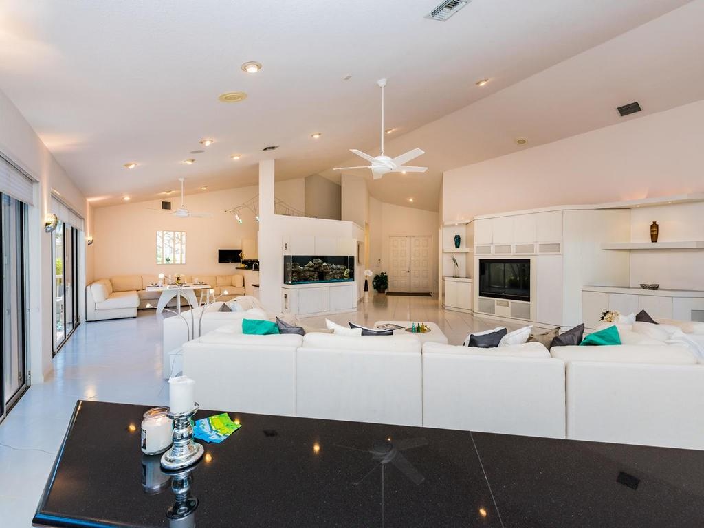 WOW! SPECTACULAR MODERN-STYLE 3/2.5/2CG SINGLE STORY ON BREATHTAKING LAKE, SURROUNDED BY PICTURESQUE GOLF OF GRAND PALMS COUNTRY CLUB! WALLS OF GLASS SURROUND THE SPACIOUS GREAT RM W/GRANITE WET BAR, DESIGNER LIGHTING, CUSTOM MEDIA CENTER, ZEN FISH TANK. LARGE BREAKFAST AREA, GRANITE KITCHEN W/WHITE CABS. MASTER BEDRM W/HUGE WALK-IN CLOSETS & MASTER BATH W/NEW GRAY PORCELAIN TILE. 3RD RM W/WALK-IN CLOSET HAS BUILT-INS PERFECT FOR HOME OFFICE. LAUNDRY RM, LARGE COVERED BRICK PATIO, FENCED YARD, ACCORDIONS.