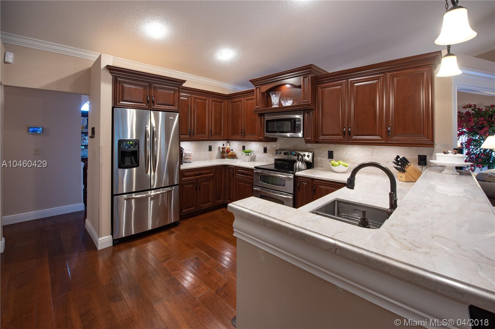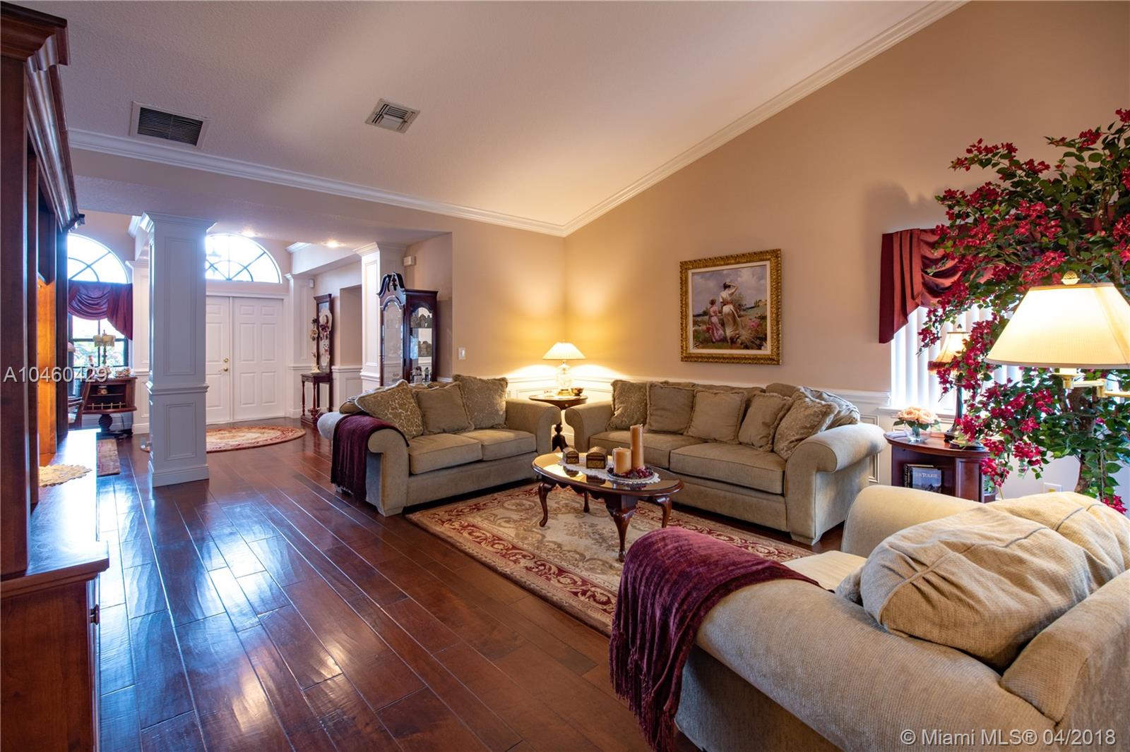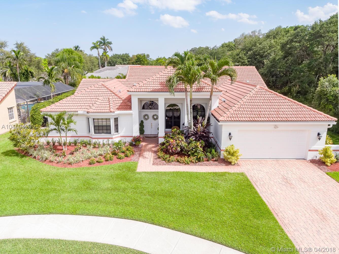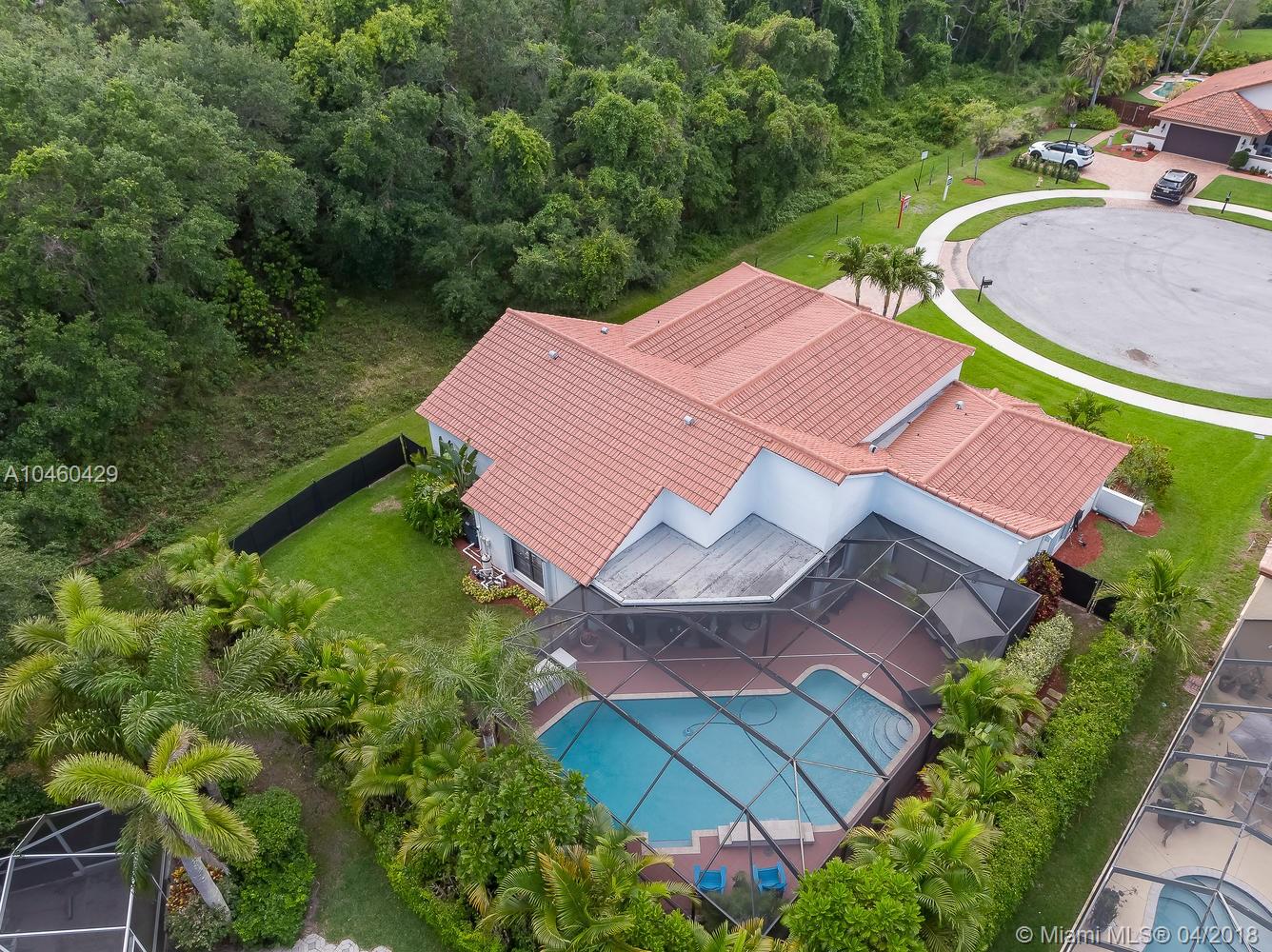4-Bedroom 2.5 bath pool home located on a cul-de-sac backing up to the “Ridge” in the highly desirable Forest Ridge neighborhood in Davie. This home features a wide open split floor plan, high end custom upgrades throughout home including “Wolf in the Woods” kitchen/guest bathrooms and master bathroom! Hardwood floors, Plantation shutters, vaulted ceilings, crown moldings, freshly painted, inside laundry room, alarm system. Master bathroom features double vanities, separate shower and deep tub. Newer roof! Top school district, Private backyard with large covered patio and custom pool with easy access to the Ridge. Hurricane shutters for the entire house, 2 car garage and beautiful landscaped yard! Located on a quiet cul-de-sac!