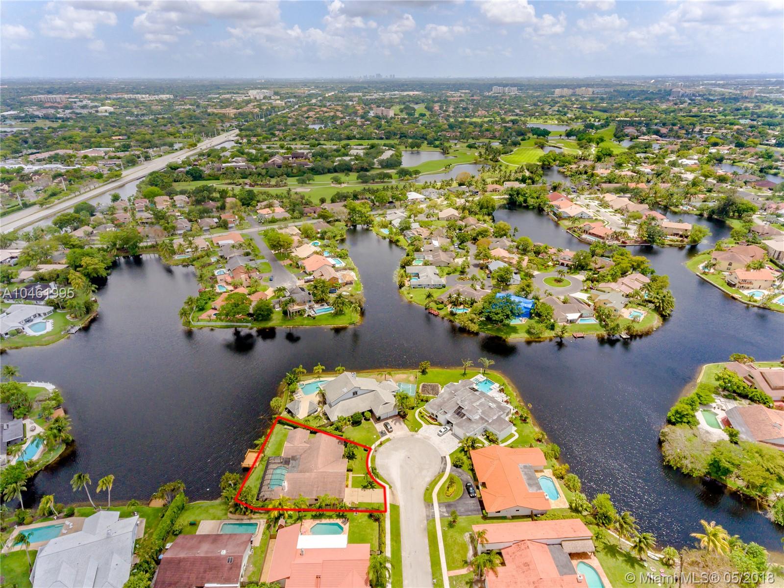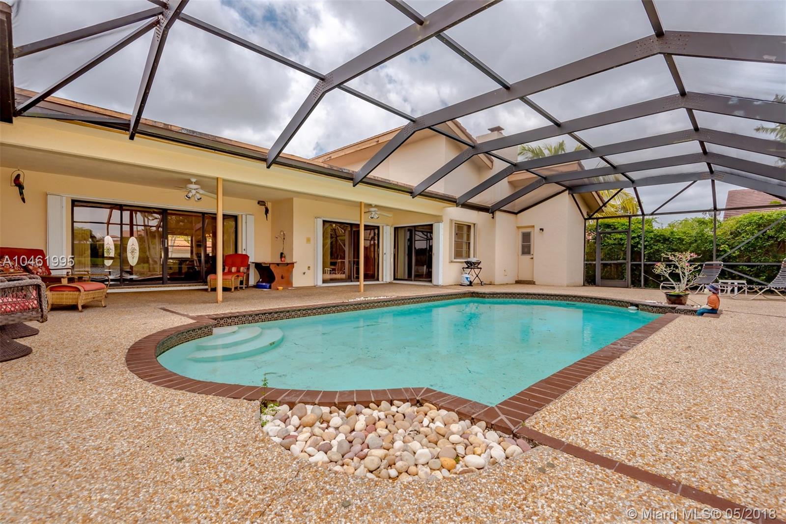 Located in the magnificent enclave of single family homes of Jacaranda Cay, a spectacular community that features an incredibly desirable lifestyle. This home boasts 4 spacious bedrooms plus office/den with 3 full baths over a 3,000 square feet of interior space. Master suite overlooking a private deck with breathtaking water views. Large master bath with roman tub, separate shower and cabana bath. Formal living and dinning rooms,kitchen with lots of cabinets. Family room features soaring gorgeous cedar cathedral ceilings with wood burning stacked stone fireplace. Massive laundry room, 2 air conditioning system for better efficiency, LOTS of closets, wired for sound system, intercom, over $17,000 in Hurricane shutters, cul-de-sac, screened pool .