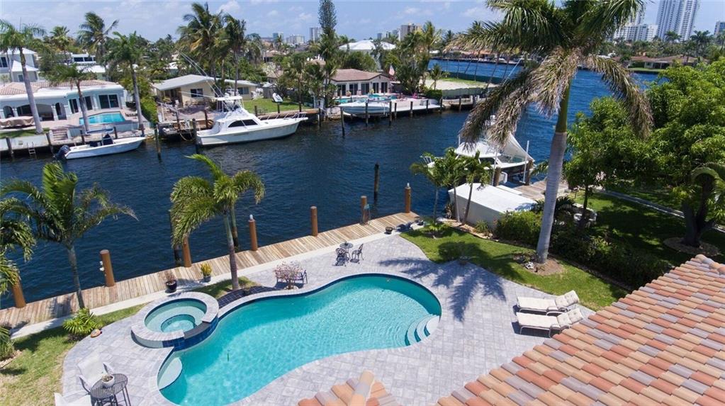 Boater's Paradise. This beautiful home is ideally situated one lot in from the point, offering intracoastal views and 70' of dock. Enjoy amazing views from your tropical backyard and exquisite pool and hot tub. The oversized paved back patio is perfect for entertaining friends and family. Step inside and enjoy an open floorplan with water views everywhere. A large eat-in kitchen boasts granite counter tops, including a breakfast counter. This home is a perfect blend of seamless indoor and outdoor living.