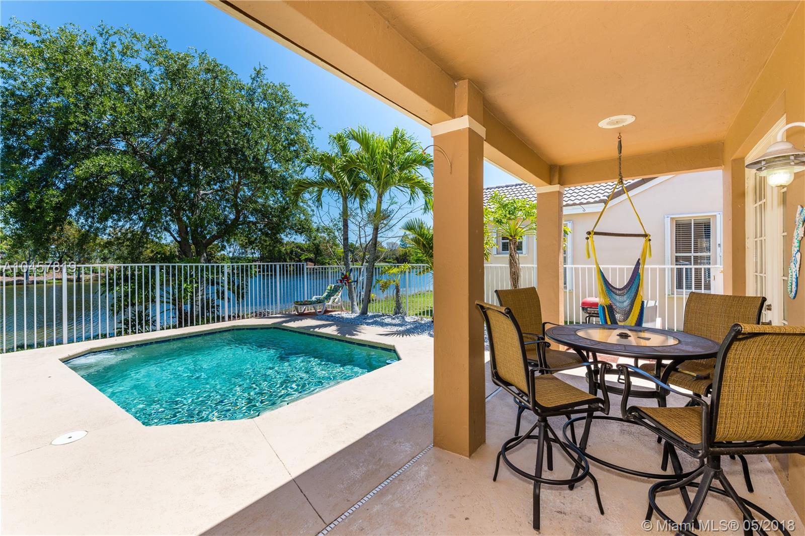 Meticulously maintained, 3/2 lake view and pool with Tiki Bar home in a desirable 24/7 Gated Community in Weston. You will fall in love with the lake view and pool. This spotless home features: Remodeled Master's bedroom bathroom and kitchen, new A/C, extended paved driveway with permit. Close to I-75, Restaurants, Shopping Centers, Banks, Cinema and A+ rated schools: Eagle Point Elementary School, Tequesta Trace Middle School and Cypress Bay High School. Must see now!!!