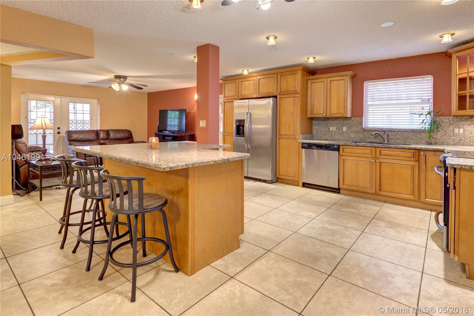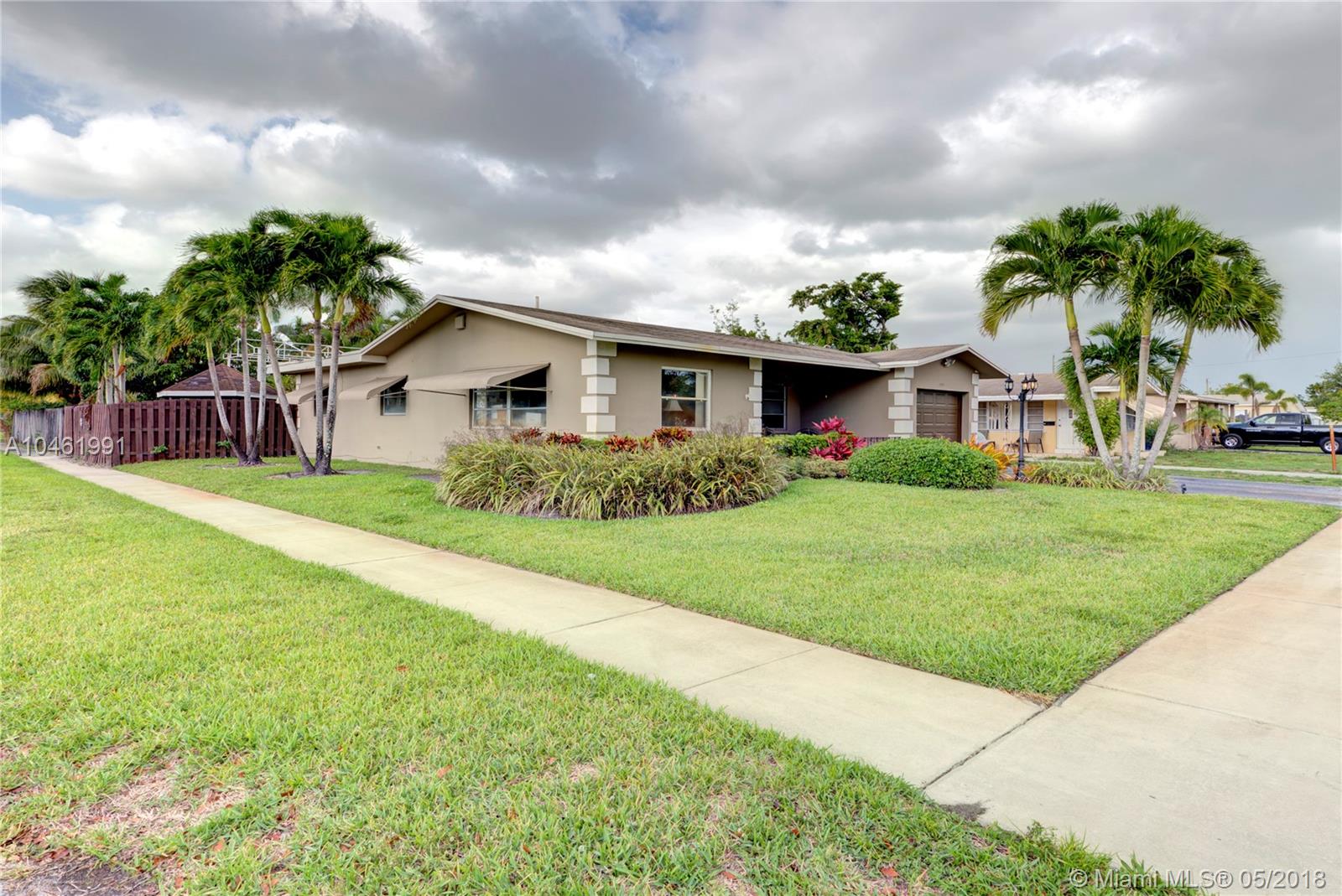 Extraordinary opportunity to own this Charming Home nestled on a beautifully landscaped corner lot. This 3 Bedroom 2 Bathroom home features a bright spacious floor-plan, Formal Living & Family Rooms with oversized 4th room, (previously the garage, easy to convert back to garage) Decorative tile throughout and wood laminate in the bedrooms, Gorgeous oversized Kitchen that has been totally remodeled with extra large island, granite tops and Stainless Steel Appliances.French Doors opening to a large oversized screened patio and backyard that features gazebo and and large paved area perfect for entertaining or parking a boat or RV. Newer A/C with the highest efficiency, Security System with cameras and thermostat control. This home is a spacious Gem with great curb appeal and location.