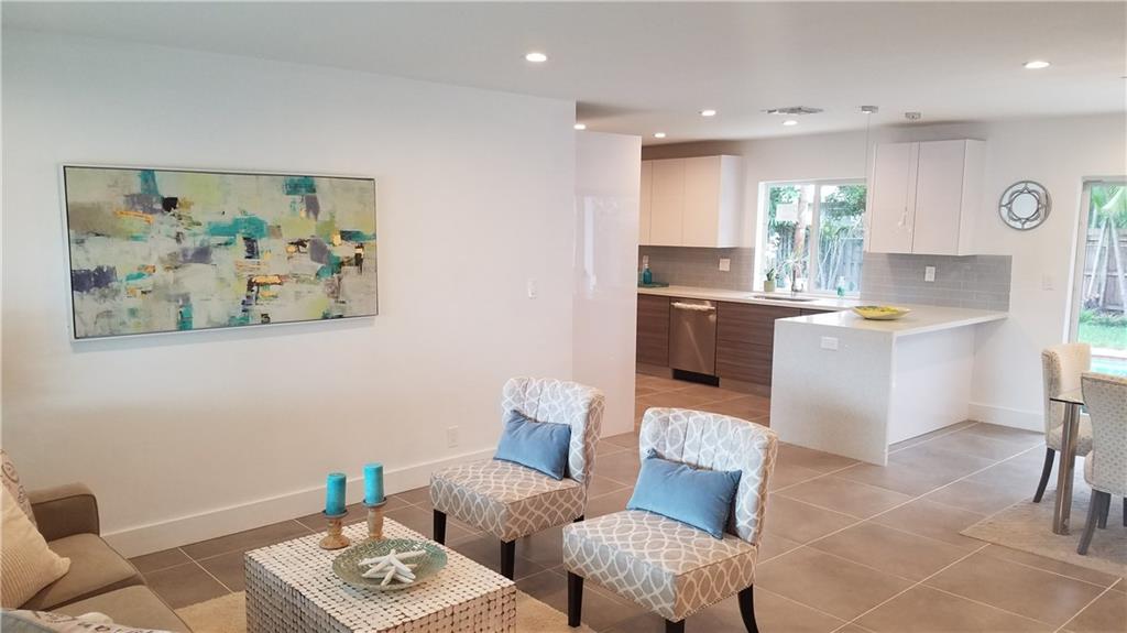 Sought after Imperial Point 3/2 pool home. Complete remodel all with PERMITS! Impact windows, doors & sliders, new electric, home features a new cement tile roof, new modern kitchen, ss appliances, wine fridge, 2 toned cabinetry, quartz countertop with waterfall edge & peninsula island w/ seating area. Master suite large enough to create a separate sitting area plus has two walk-in closets, dual sinks & its own entry to the pool and zen-like backyard. Also has an exterior pool-side shower and much more...