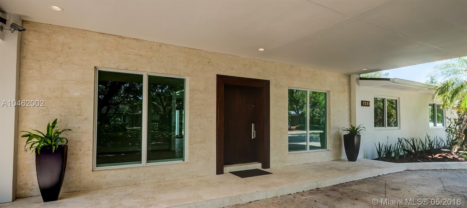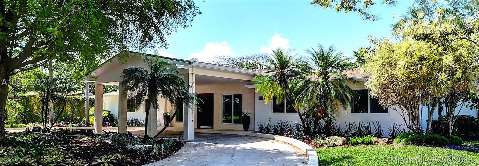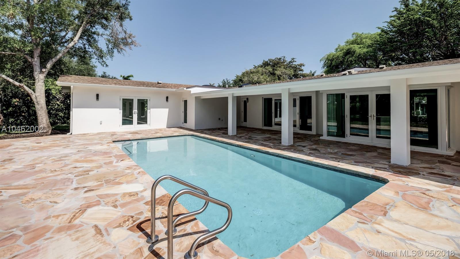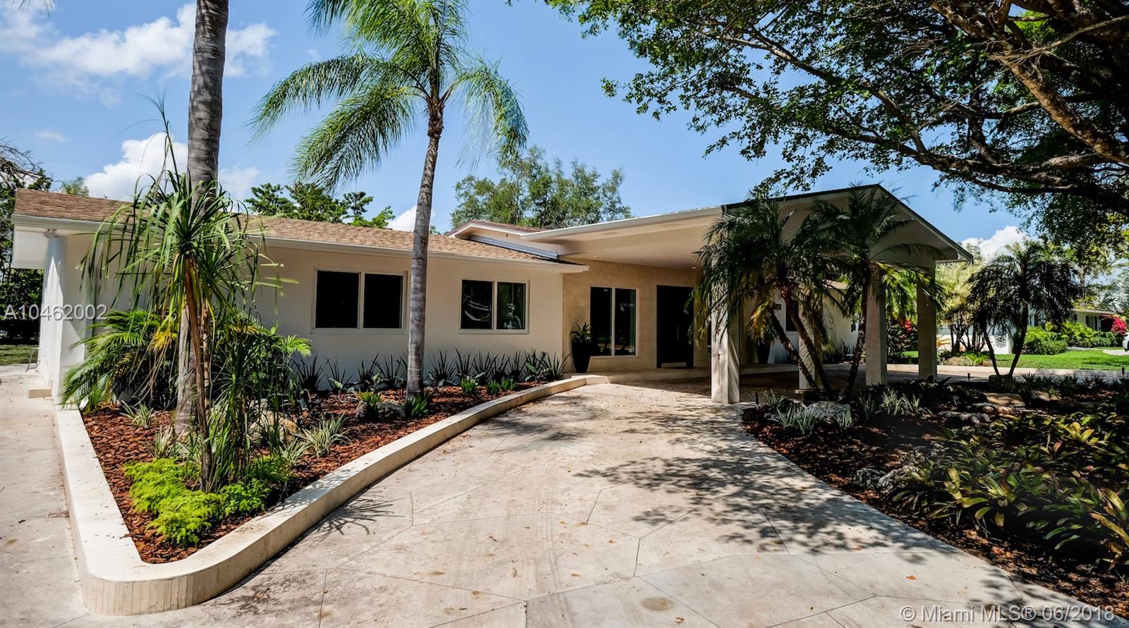 This is an absolute gem! Completely remodeled to the latest standards- look at the pictures! This large, 4 bed/5 bath family home is located on a quiet, tree-lined street in the heart of Pinecrest; new Euro-design kitchen with German Bosch appliances; five new bathrooms with Italian tile, European vanities and Hansgrohe faucets; huge master suite with large his/hers walk-in closets. Marco Corona Italian porcelain floors cover the entire home; designer light fixtures; all new impact doors and windows. Resurfaced pool with rich "Sonoran Gold" flagstone deck > 2000 SF. All new plumbing - 100% copper and PVC lines. Located on a shaded, private lot with circular driveway and an impressive porte cochere entry. This is the best available property in Pinecrest in its price range.