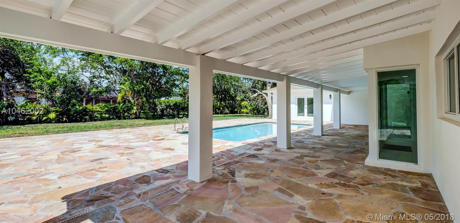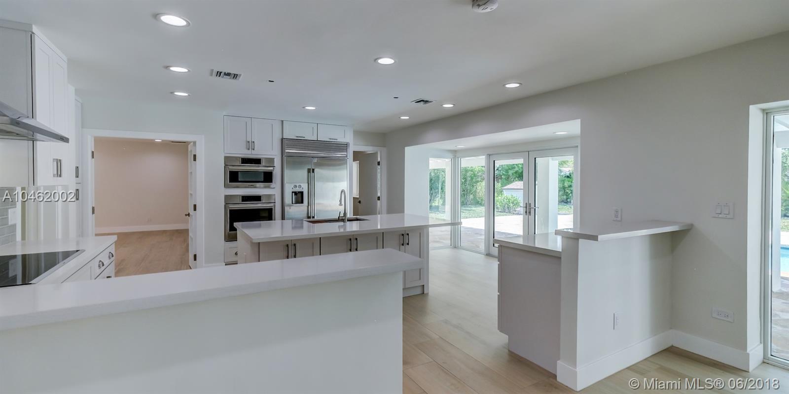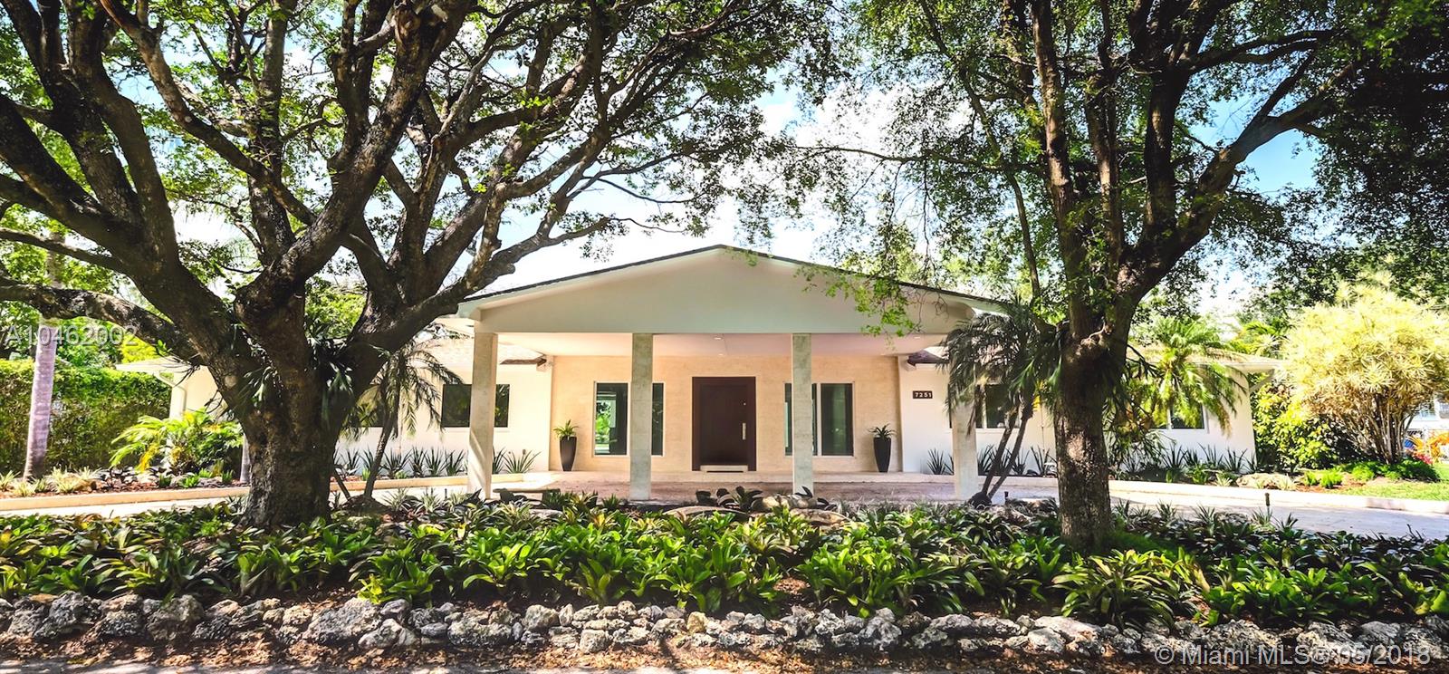 This is an absolute gem! Completely remodeled to the latest standards- look at the pictures! This large, 4 bed/5 bath family home is located on a quiet, tree-lined street in the heart of Pinecrest; new Euro-design kitchen with German Bosch appliances; five new bathrooms with Italian tile, European vanities and Hansgrohe faucets; huge master suite with large his/hers walk-in closets. Marco Corona Italian porcelain floors cover the entire home; designer light fixtures; all new impact doors and windows. Resurfaced pool with rich "Sonoran Gold" flagstone deck > 2000 SF. All new plumbing - 100% copper and PVC lines. Located on a shaded, private lot with circular driveway and an impressive porte cochere entry. This is the best available property in Pinecrest in its price range.