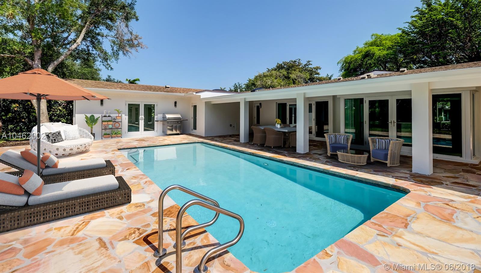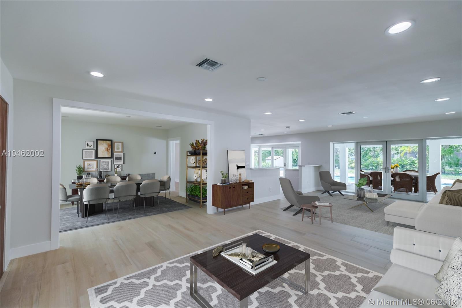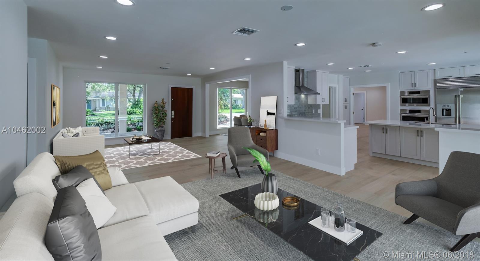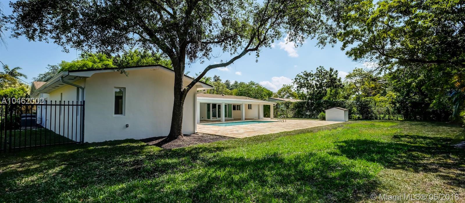 This is an absolute gem! Completely remodeled to the latest standards- look at the pictures! This large, 4 bed/5 bath family home is located on a quiet, tree-lined street in the heart of Pinecrest; new Euro-design kitchen with German Bosch appliances; five new bathrooms with Italian tile, European vanities and Hansgrohe faucets; huge master suite with large his/hers walk-in closets. Marco Corona Italian porcelain floors cover the entire home; designer light fixtures; all new impact doors and windows. Resurfaced pool with rich "Sonoran Gold" flagstone deck > 2000 SF. All new plumbing - 100% copper and PVC lines. Located on a shaded, private lot with circular driveway and an impressive porte cochere entry. This is the best available property in Pinecrest in its price range.