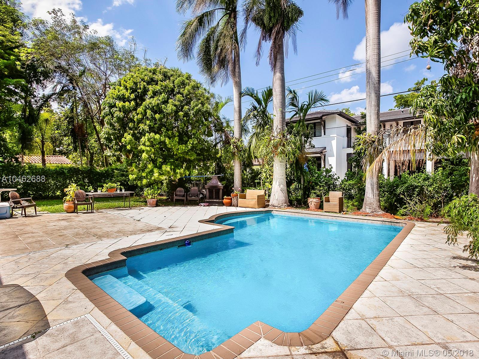 Ideally located Gables home. Spacious 3 bedroom, 3 bath with beautiful oak wood and ceramic tile floors. Master Bedroom Suite has extended sitting area. Sparkling Pool on a double lot. Home has a new flat tile and bathrooms were updated. Excellent access to UM campus, major roads and public transit.