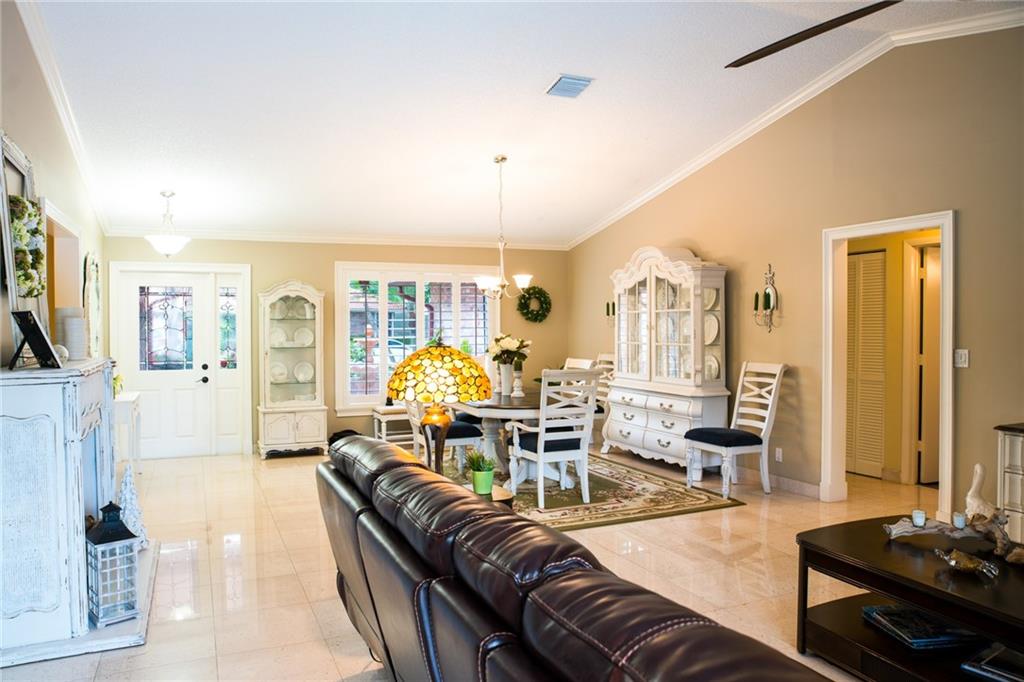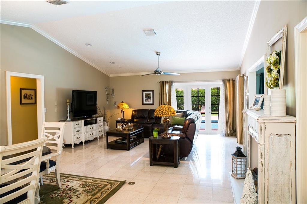 ENTER INTO THIS BEAUTIFULLY APPOINTED HOME WITH HIGH QUALITY MODERN UPGRADES. BEAUTIFUL MARBLE AND WOOD FL EXTEND THRU THE INTERIOR, WINDOWS DRESSED WITH PLANTATION SHUTTERS, WOOD CABINETS WITH SMOKED GRNT SURROUND THE KIT WITH BLACK APP 2016. CROWN MOLDING COMPLETES EVERY ROOM, BATHS CREATED WITH IMMACULATE DESIGN 2015, BR TASTEFULLY DECORATED WITH NEUTRAL COLORS, ROOF 2003, ACCORDION SHUTTERS 2012, A/C 2016, PARTY WITH FAMILY/FRIENDS IN OVER SIZED YD WITH POOL AND BRICK PAVED PATIO SURROUNDED IN PRIVACY