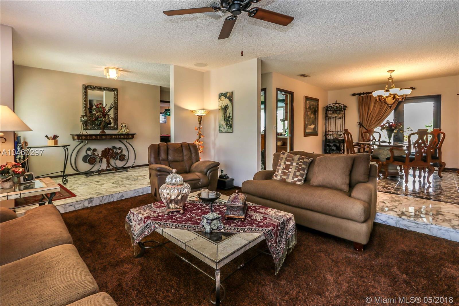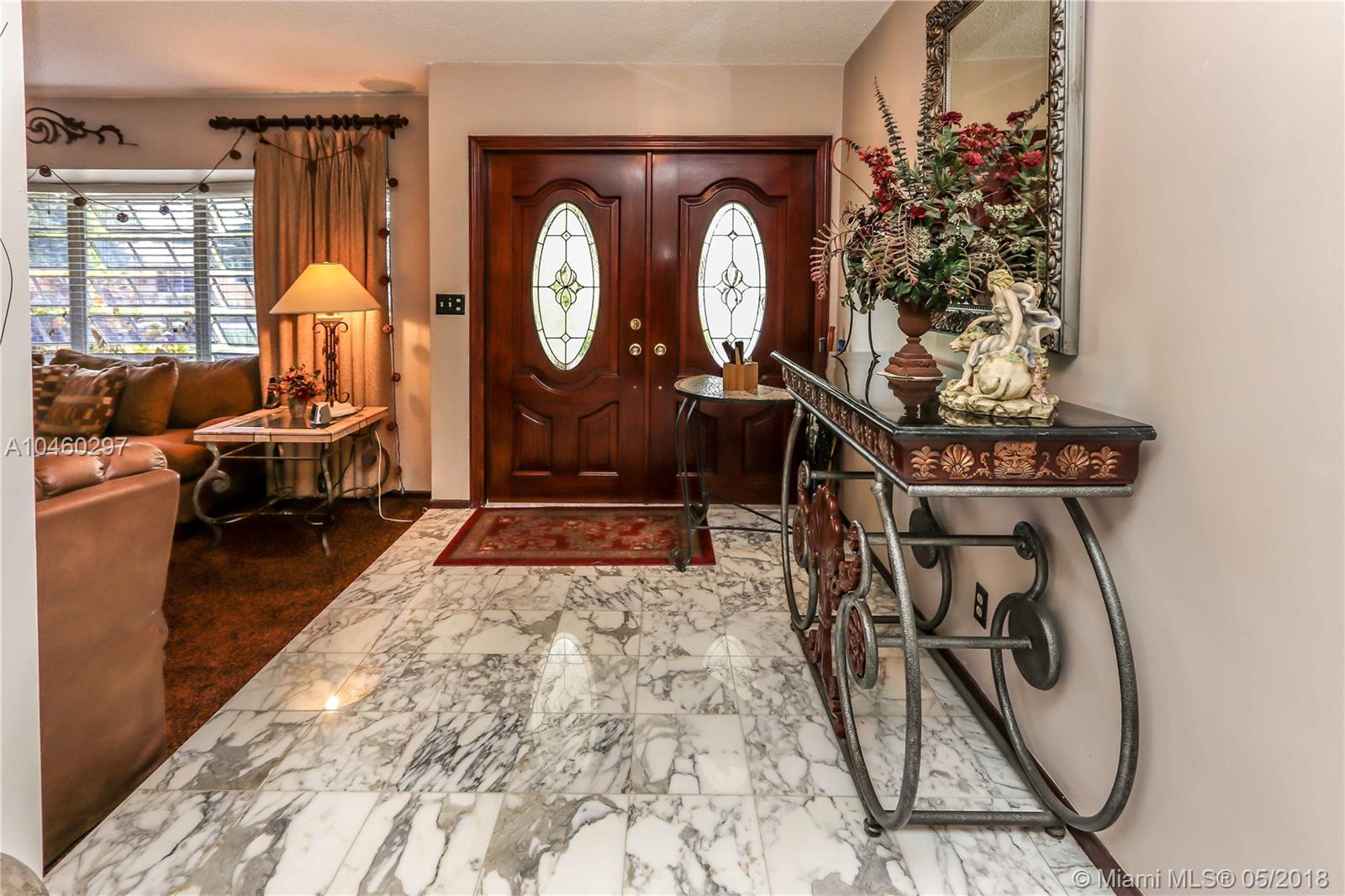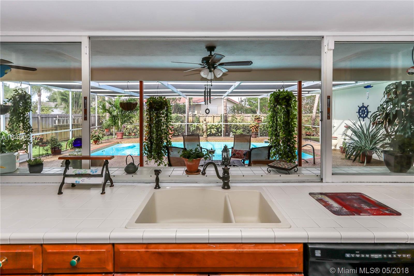 This Beautiful well maintained 3 bedroom, 2 full bath pool home is nestled in the heart of Hollywood Hills, Just 2 minutes from Hospitals and private and public schools are within walking distance. Upon entering this home you see beautiful marble flooring and a sunken living room with a large bay window bringing in the morning light. The spacious kitchen with lots of cabinets and wall-to-wall sliding windows that overlook the large enclosed patio and pool area is perfect for entertaining family and friends. Both the formal dining room and family room have French doors leading to the pool area. Fully fenced in back yard. The laundry room has a new washer & dryer along with a utility sink, shelves, and pantry. Beautifully landscaped home with a circular driveway. Accordion Shutters.