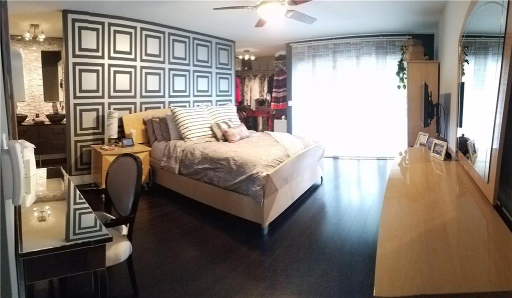 Perfectly remodeled...Garage & driveway in front + Guest Parking lot right outside your back patio door & steps to the pool...Wood floors throughout...Granite & Wood Kitchen w/plenty of cabinet storage & huge snack bar countertop...S.Steel Appl's...Huge Living Rm opens to big roofed/screened patio...Custom recessed lighting...Bonus Open Air private patio w/wall fountain & cooling fans accessed from foyer & kitchen...Huge Master suite w/2 walk-in closets, balcony & remodeled bath...Guest bedroom remodeled