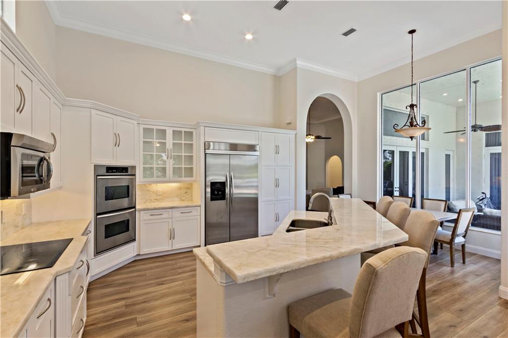 NO NEED TO BUILD! THIS BEAUTIFULLY UPDATED HOME HAS IT ALL! FEATURES INCLUDE CROWN MOLDING, FRENCH DOORS, PLANTATION SHUTTERS, BUILT-IN CLOSETS, DESIGNER FIXTURES & CUSTOM WINDOW TREATMENTS. OPEN FLOORPLAN WITH SOARING CEILINGS & OVERSIZED WINDOWS OVERLOOKING THE LAKE AND LUSH TROPICAL LANDSCAPING. OPEN KITCHEN WITH NEW QUARTZ COUNTERTOPS & SS APPLIANCES. SPACIOUS MASTER SUITE & LUXURIOUS MASTER BATHROOM WITH JACUZZI AND BEAUTIFUL SLATE FLOORS. PRIVATE FENCED BACKYARD WITH LARGE LANAI & SALT WATER POOL.