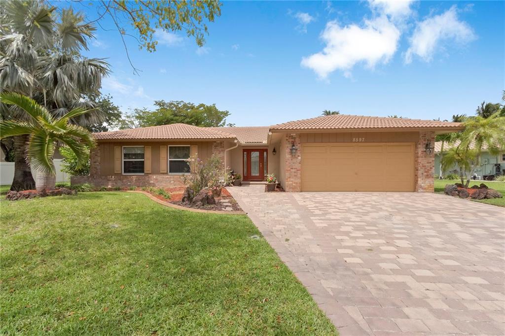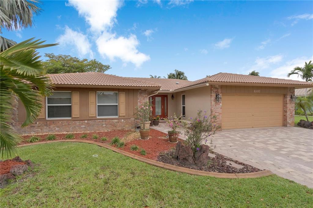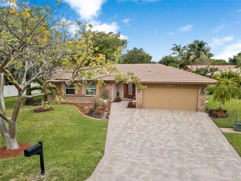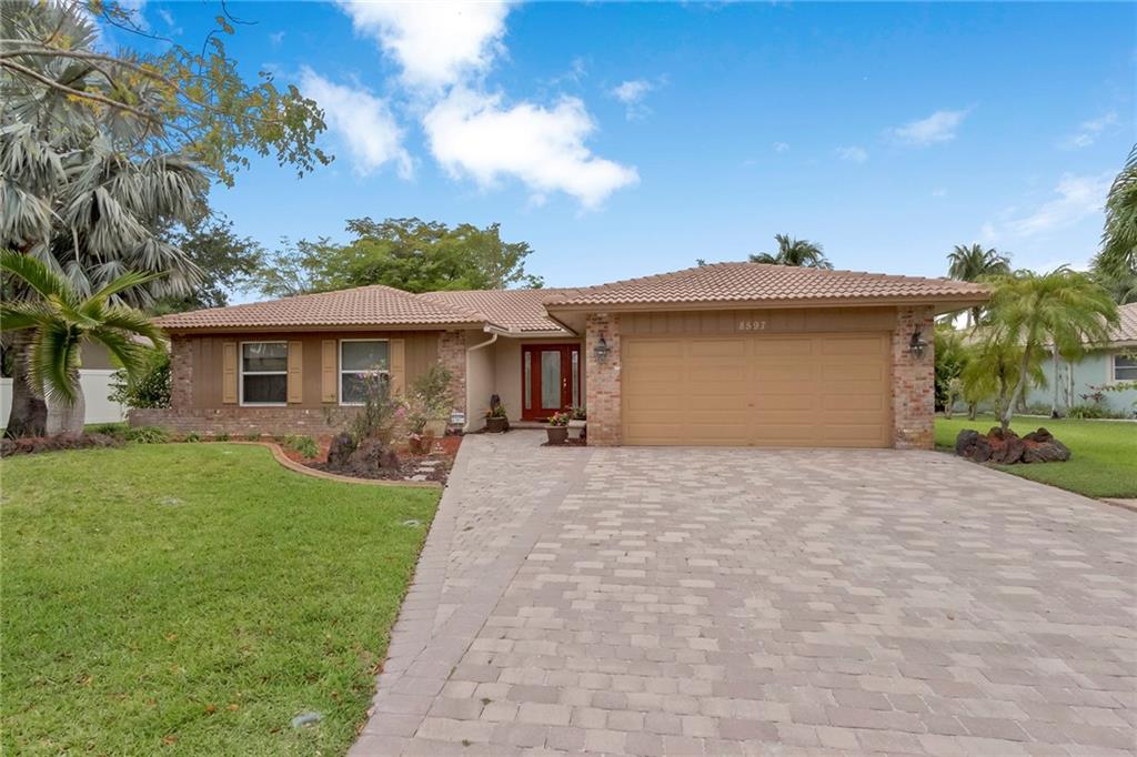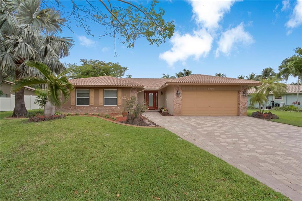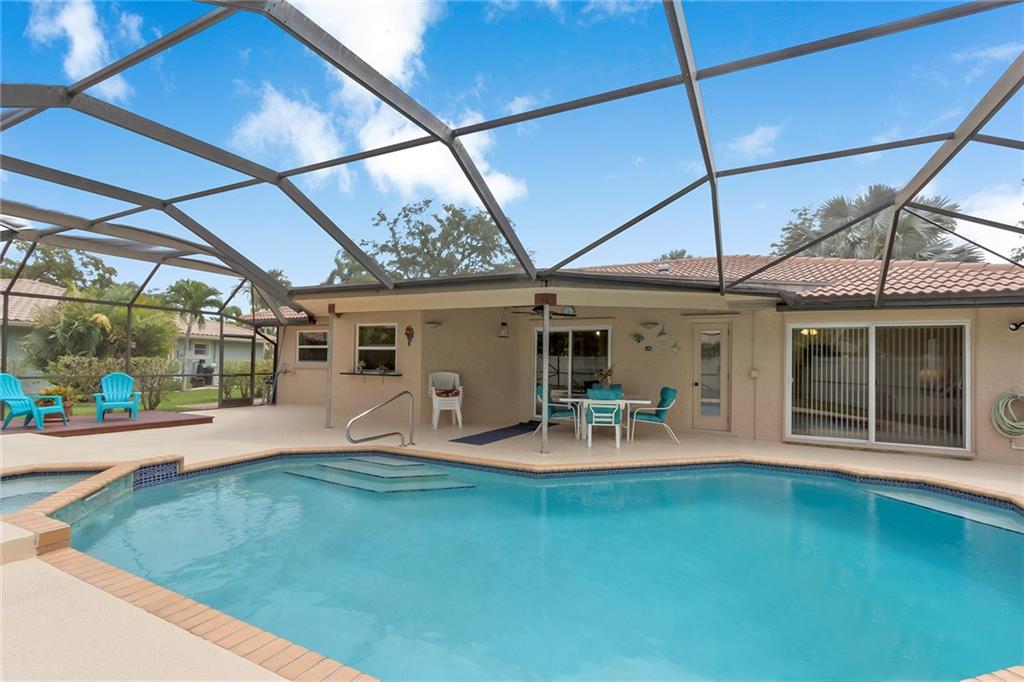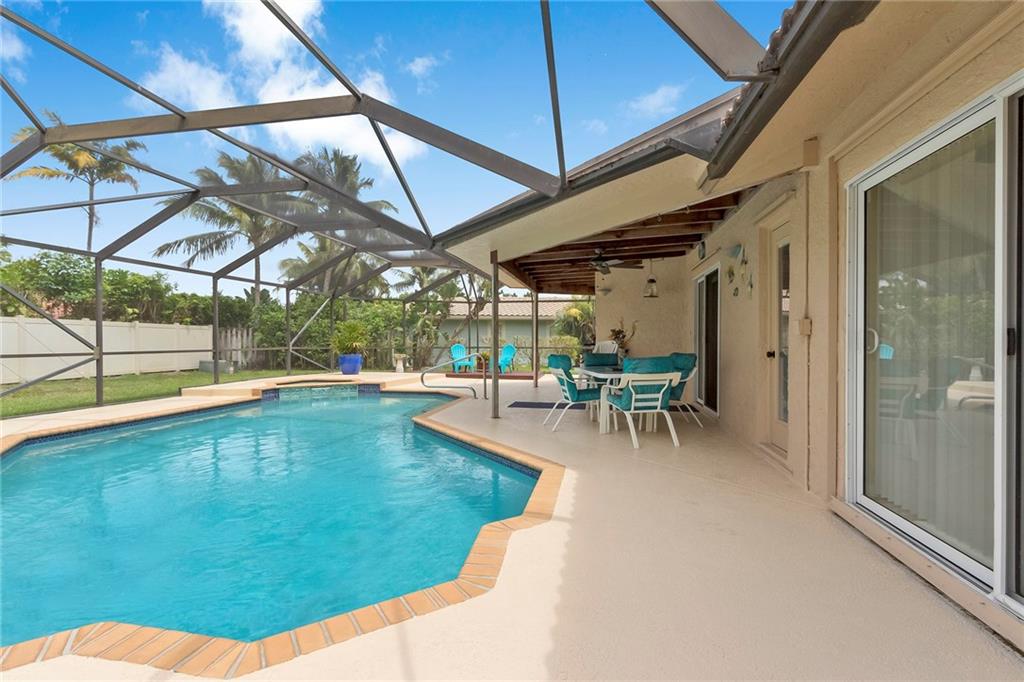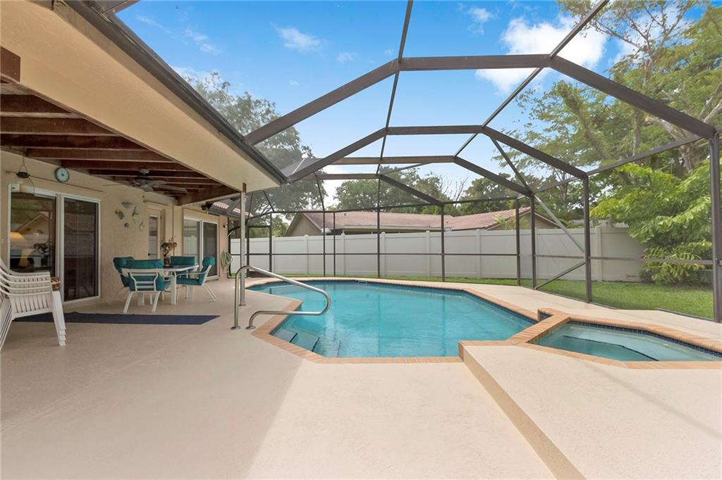 Beautifully kept single family home with 3 bedrooms and 2 baths and upgraded eat in kitchen, family room, formal dining room and living room, Impact windows. Enjoy this private backyard with a screened in pool and LED lights with a small spa, fenced back yard and immaculate landscaping. This home has a 2 car garage and a 5 car driveway. DON'T MISS THIS GREAT OPPORTUNITY!!! A home in the desirable Shadow Wood community with great schools and close to everything.