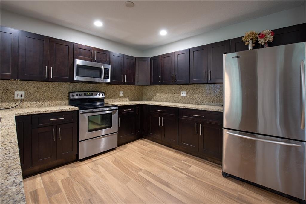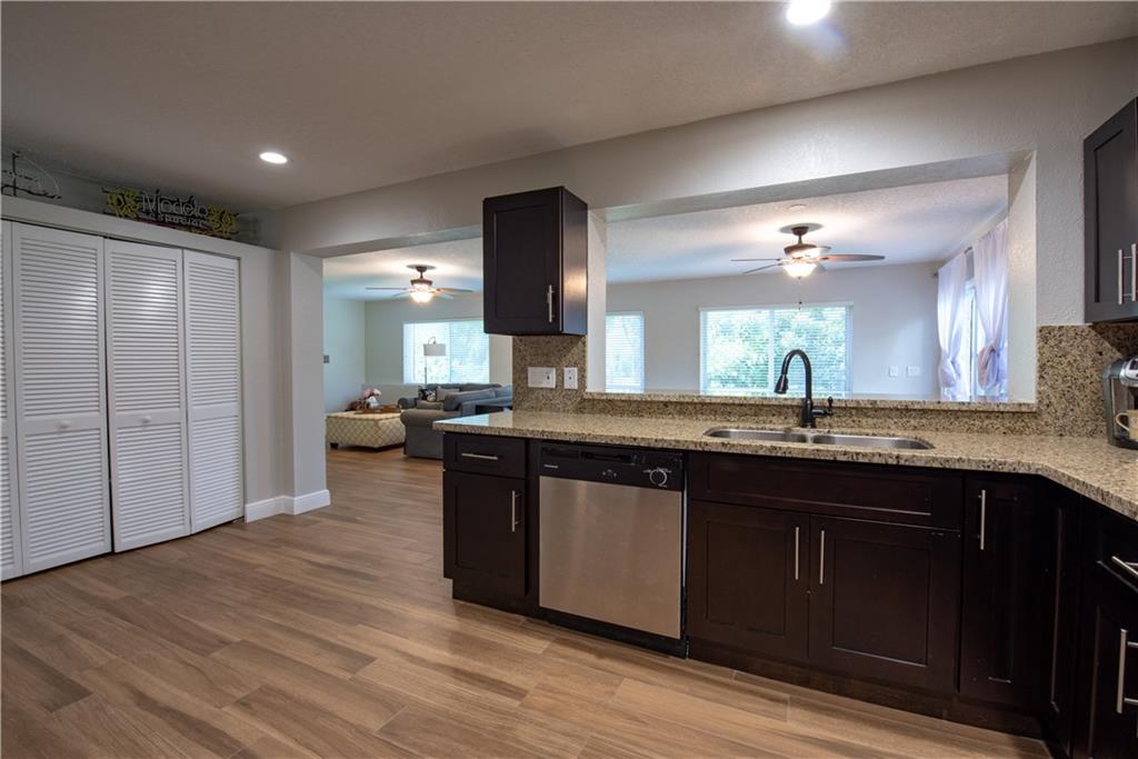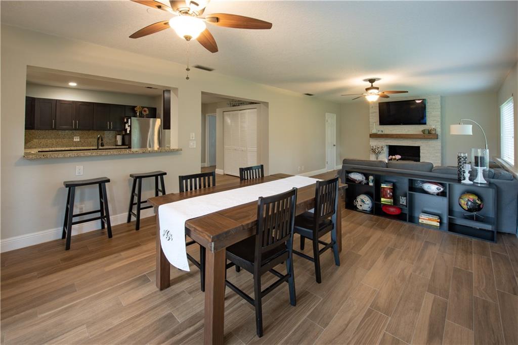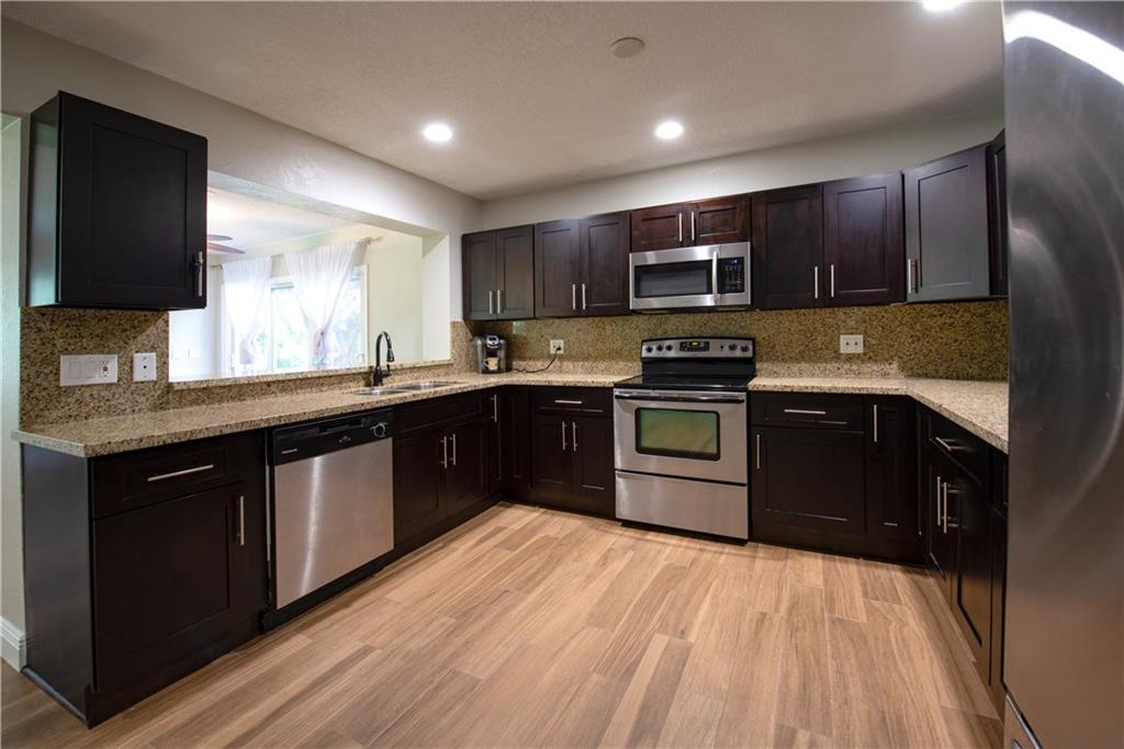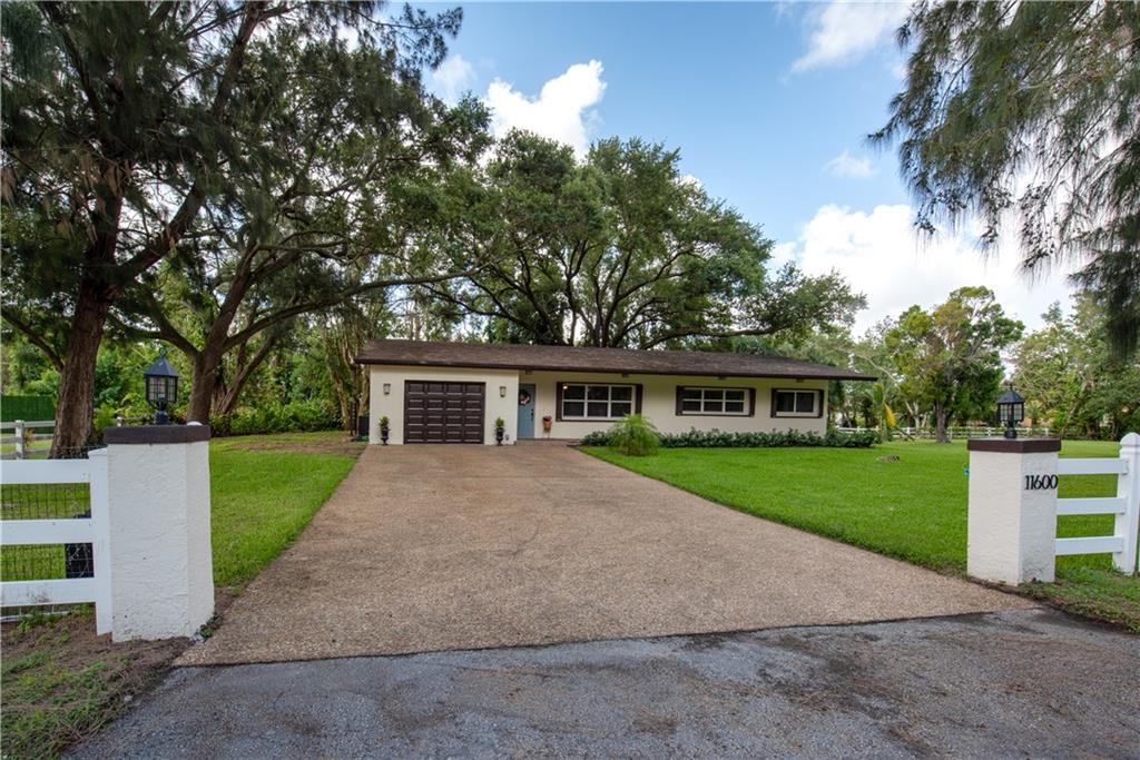 Totally updated 3 bed 2.5 bath home on a FULL ACRE toward the end of a cup-de-sac in Plantation Acres. Open concept living at its finest with gorgeous new wood-look tile throughout the main living spaces, updated LARGE kitchen, stunning white stone fireplace, and 3 generous bedrooms bedrooms. Master has en-suite with sliders that access the hidden patio area! Light, bright and ready for your family! **Zoned for horses!