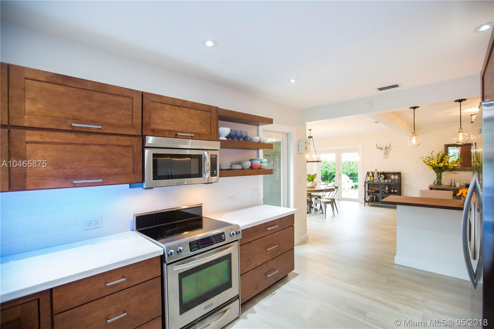 Beautiful Miami Shores Home. 4-bedrooms 3-baths and/or den. This corner home is freshly updated, with Impact windows, and room for a pool. The Master bedroom is on the opposite side of the other two bedrooms, offering plenty of privacy. The 4 bedroom could be used for in-laws/guest. The open plan kitchen has stainless steel appliances and plenty of beautiful quartz counter space, as well as solid wood cabinetry and breakfast counter. Living room and dining, are airy and open to the back yard through an elevated deck that is perfect for grilling.This is a very exclusive and sought after neighborhood, and this beautiful home has lushes landscaping.