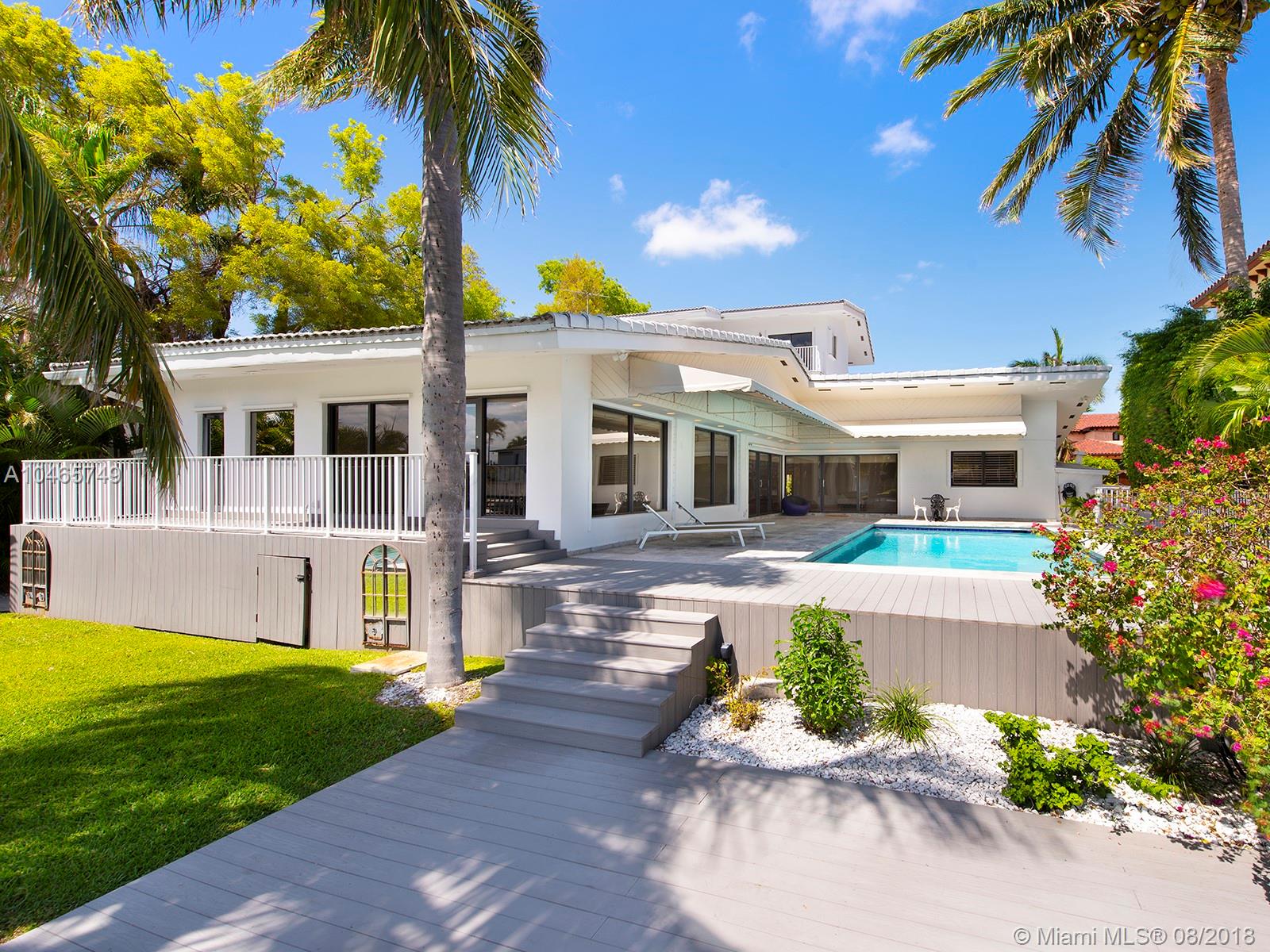This is an amazingly stylish home with loads of space and privacy for everyone. Formal entry with dramatic staircase & expansive view of pool & waterway. Oversized gourmet kitchen with center counter & access to the outdoors. Family room, large office space, pantry, laundry and huge master suite are all on the 1st floor. Beautiful pool, deck & dock, just minutes to Biscayne Bay. Sans Souci is a gated community, accessible to all that makes Miami exciting.