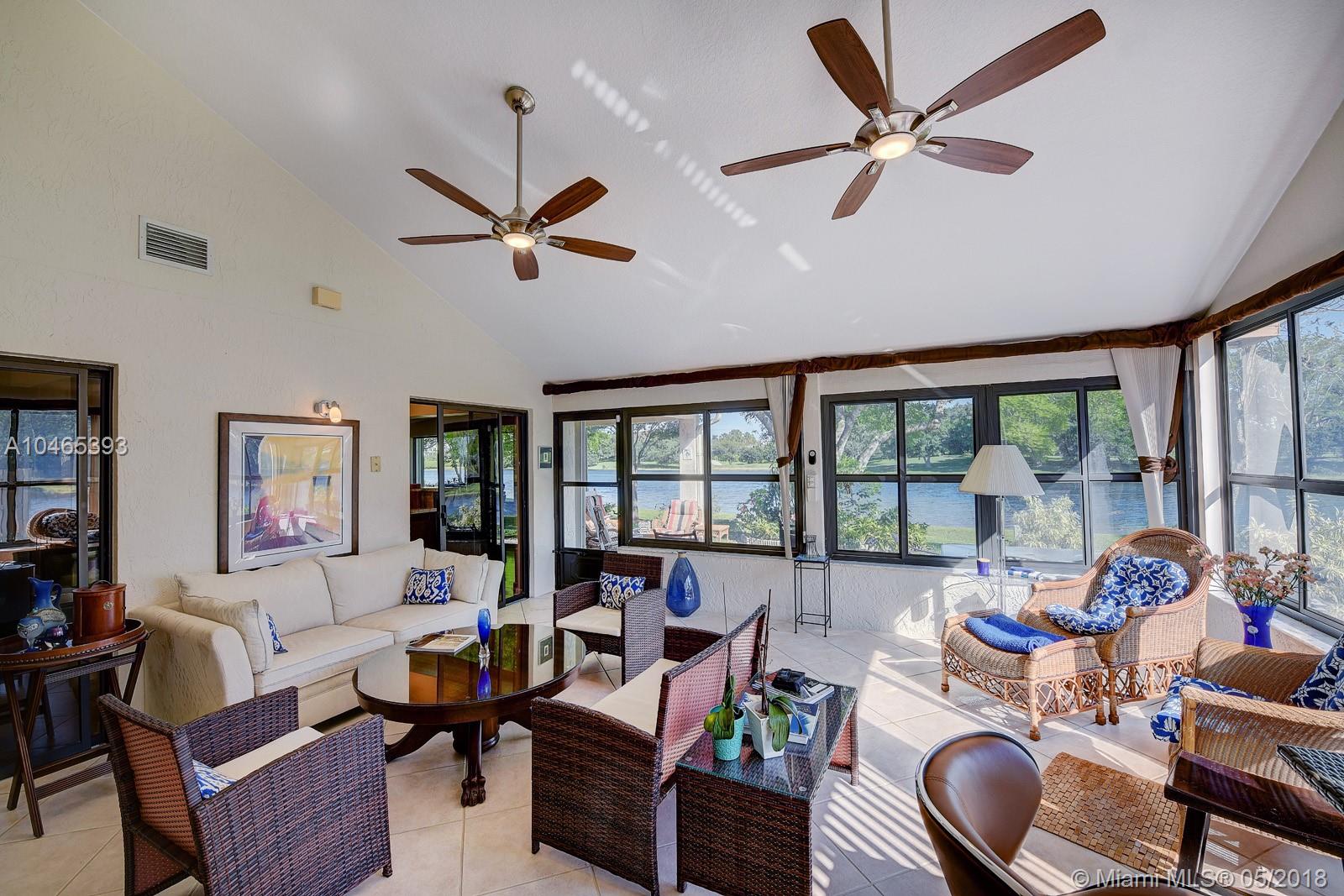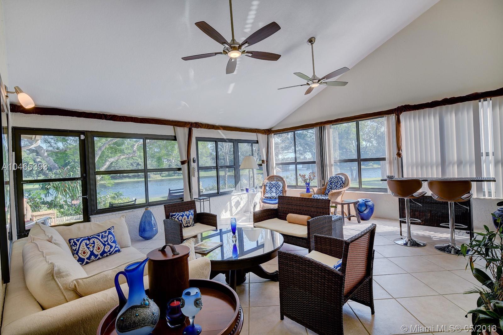 Million Dollar View...Here it is! Surround yourself with over 120 feet of waterfront panoramic lake views! Customized, fully updated floorplan has an abundance of living area. Relax in your contemporary Kitchen with 48" wood cabinets, granite, stainless appliances, wine fridge, and extra pantry storage with over-sized island for the largest buffets or elegant dining. New wood flooring extends into the family room with built-in speakers and expansive wall of windows to take in the views. Interior patio with AC, extends your living space to enjoy the lake's serenity or entertain a crowd. Master bedroom suite and Second bedroom both have updated contemporary baths. Large patios front and back, perfect for relaxing or entertaining. New AC & Security system. HOA includes lawn and tree trimming.