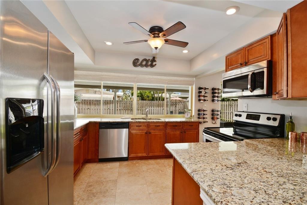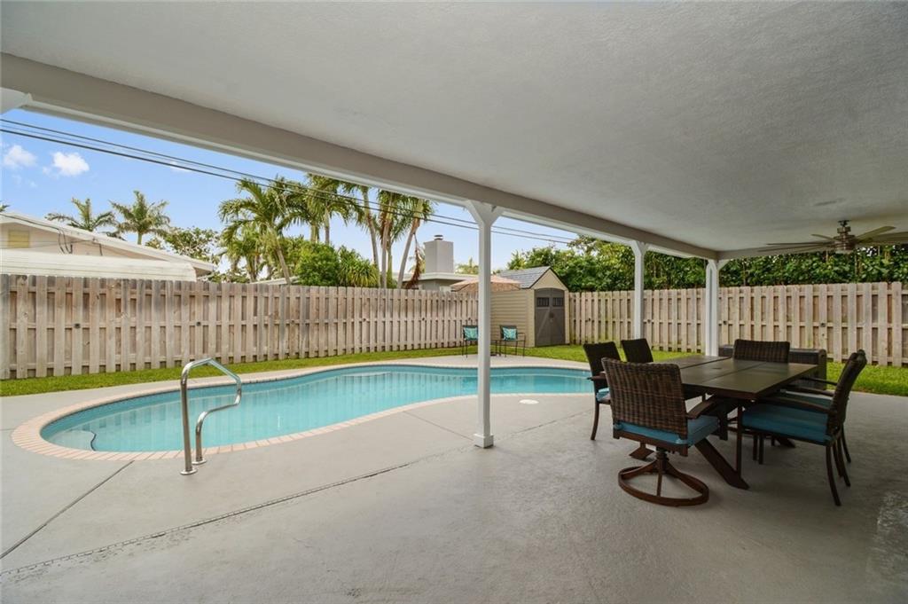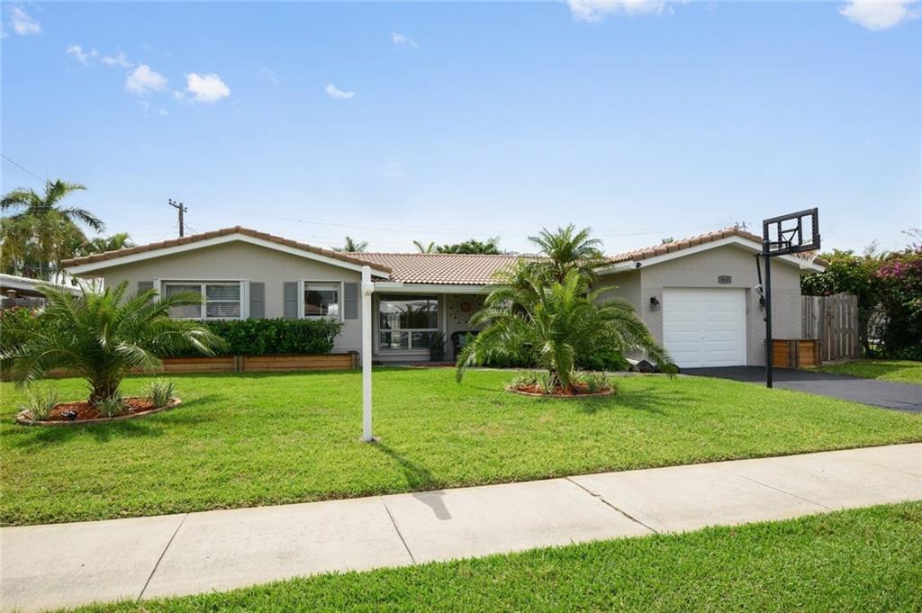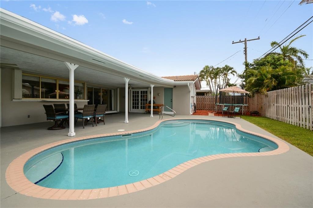 Wonderful three bed, two full bath pool home located in lovely Imperial Point. This property features a split bedroom configuration, travertine floors, upgraded spacious kitchen with solid wood cabinetry, stainless steel appliances, granite counters. Separate office area off kitchen. Large covered patio opens to beautiful pool making entertaining a breeze. Remodeled master bedroom En-suite bath. Garage, a/c 2016 and hot water heater 2015. Just minutes to the beach, Intracoastal, shopping and dining.