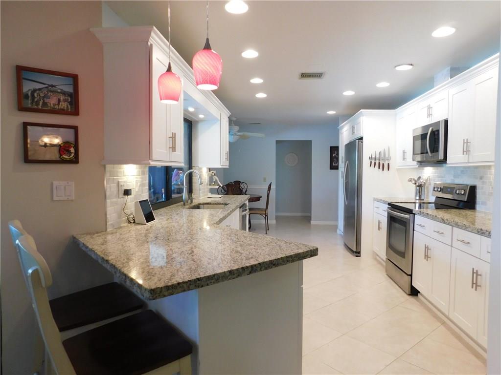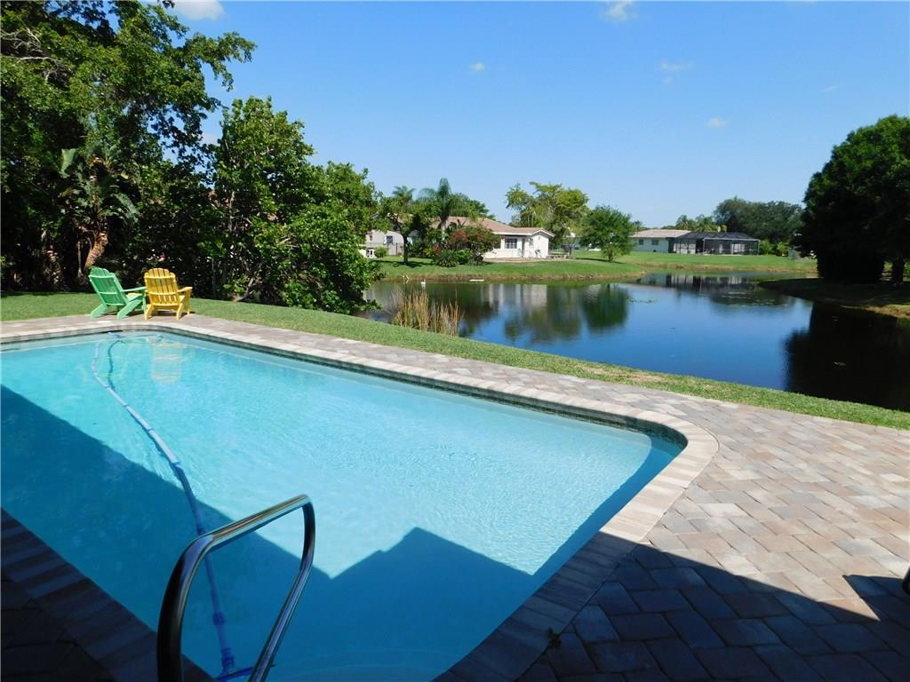 A Rare Find. Beautiful Lake Views from Impact windows and Doors!. NEW Sparkling white kitchen with amazing lighting and NEW Stainless Appliances, Both Bathrooms and Big Laundry Room. NOT a Flip! This is a home that was loved and cared for with the amazing lifestyle that this perfect floorplan creates. Private, wide lakefront property with big fenced yard and huge covered patio (NEW Flat Roof, too) New A/C, NEW Electrical Panel, Pool and Pavers Deck 3 yrs. Everything has been done, just come and enjoy!!