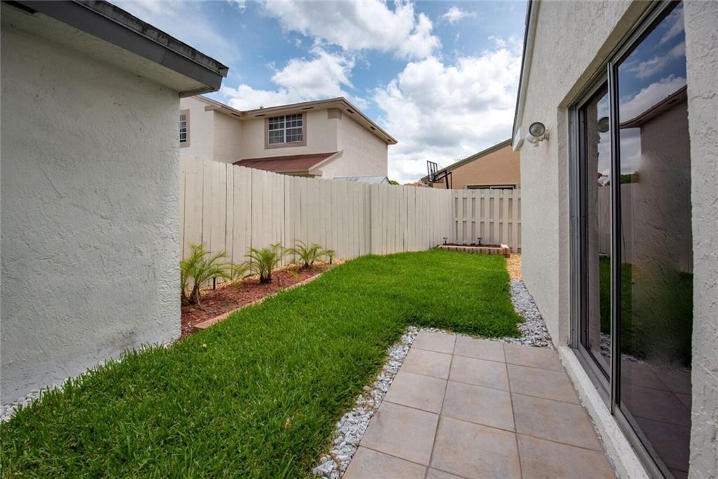 Beautiful 3/2.5 home with 1 car garage. Freshly painted inside and out. Roof replaced 2015, A/C replaced 2012. Private oversized corner cul de sac location. Screened, roofed patio leads out to private fenced backyard with lush landscaping. Tile throughout downstairs. Laminate flooring in all bedrooms and staircase. Master suite: Walk in closet, roman tub, dual sinks LOW HOA FEES. Community pool. Walk to elementary school, minutes from Sawgrass Mills Mall, minutes to highways, great restaurants & shopping.