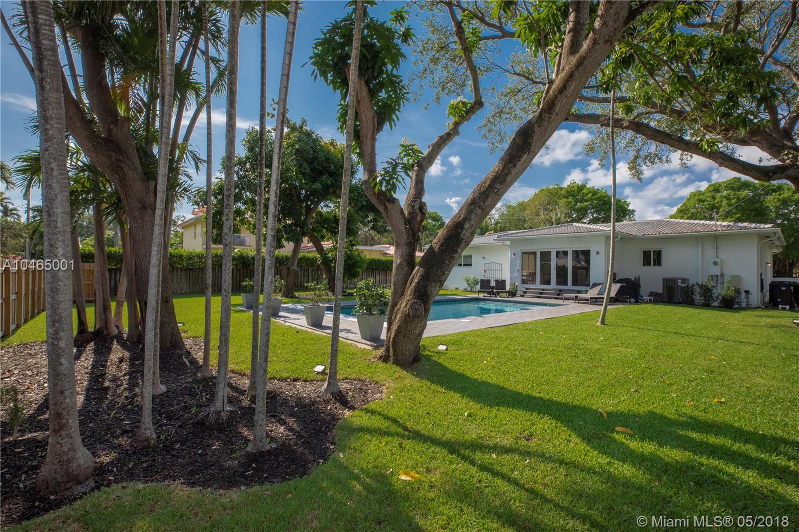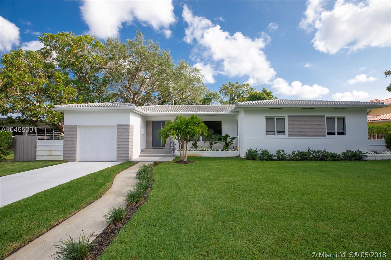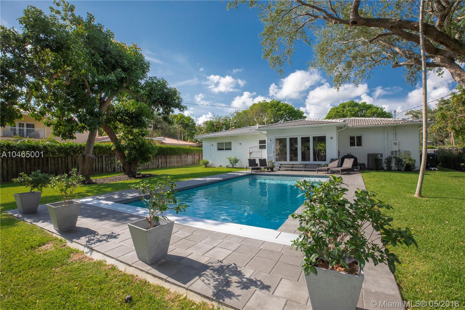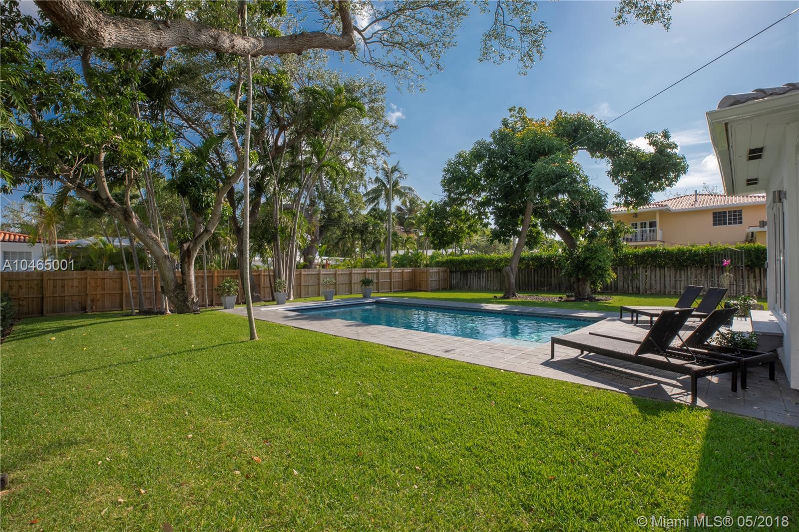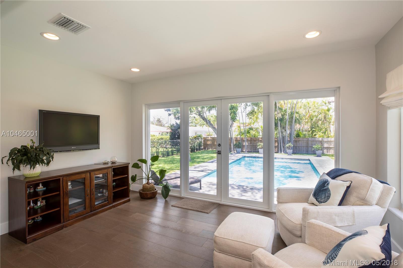 Delightful curb appeal and a manicured front lawn set the stage for this move-in-ready east Miami Shores charmer situated on an oversized lot just blocks from the Bay. Completely renovated in 2017 including a new roof, all impact doors & windows, new spacious kitchen with expansive countertops & storage, and new plumbing & electrical systems. French doors open to a tropical sanctuary of relaxation complete with a resort-style heated pool and lovely landscaping. Entertaining will be a breeze with the open floor plan and expansive back garden/pool area. SQ FT per appraisal.