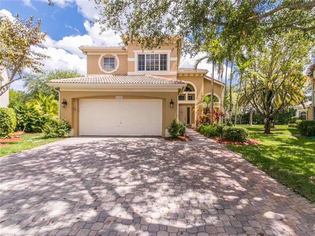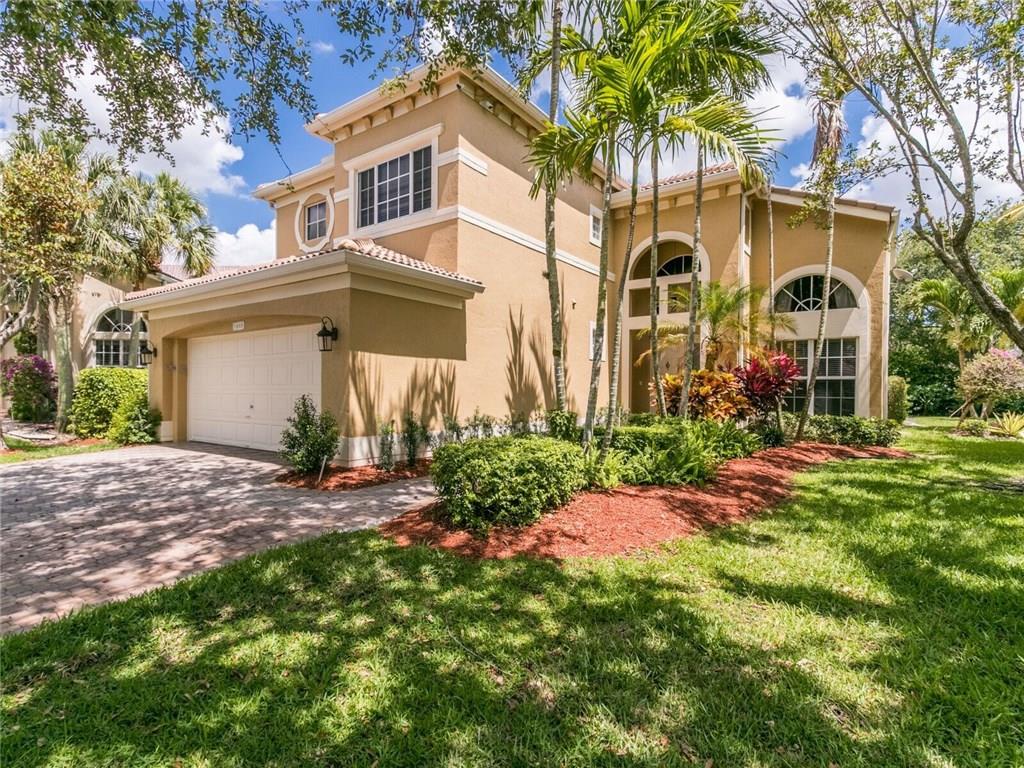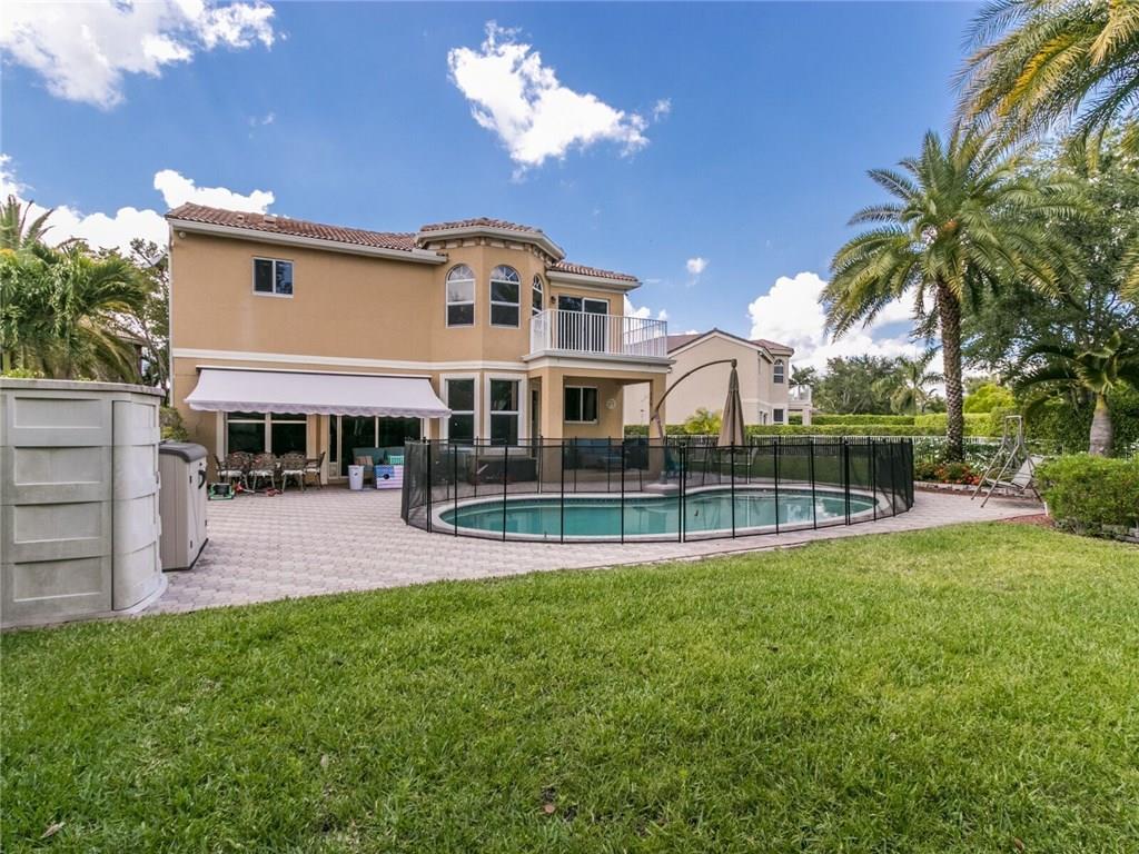 Large 5 Bed, 3 bath, updated, heated salt water pool home with large fenced backyard in top school district. S/S Appliances all less than 3 years old, 2 air units both 5 years old, no carpet, all wood floors upstairs, tile downstairs- 4 bedrooms upstairs including master with two walk in closets, second mstr down with full bathroom. Home has extended driveway, Mosquito mister, pool fence for kids, lush tropical landscape, family friendly street with lots of kids, Two resort style clubhouses, gated., HOA pays for landscape, house painting, guard gate, and so much more.