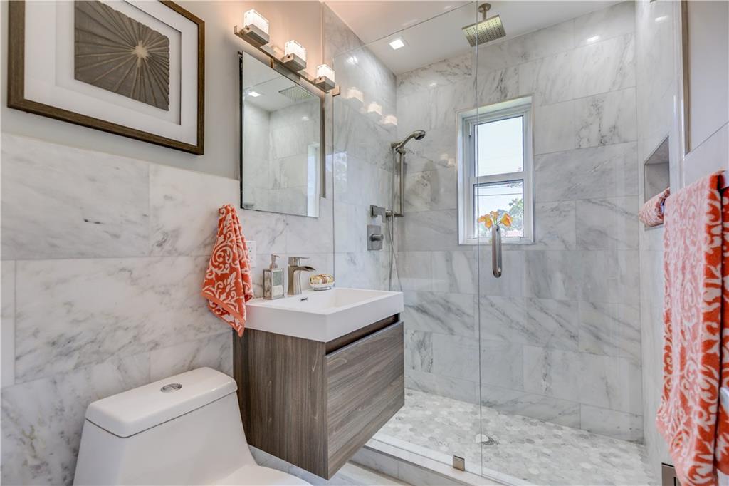 JUST REDUCED - Stunning Contemporary Completely Remodeled home. 3 bed 1 bath w/bonus room for a den/office. Features new Quartz Kitchen, Glass Tile & SS Appliances, Bathroom Carrera Marble w/ overhead Rain Head Shower. Beautiful Porcelain tiles. Custom Closets & Ceiling fans all bedrooms. Large private fenced back yard for entertaining - new landscaping and sod. Well Sprinkler system. New roof, plumbing, electrical & Impact windows/doors Located a mile from beach/Dtown.