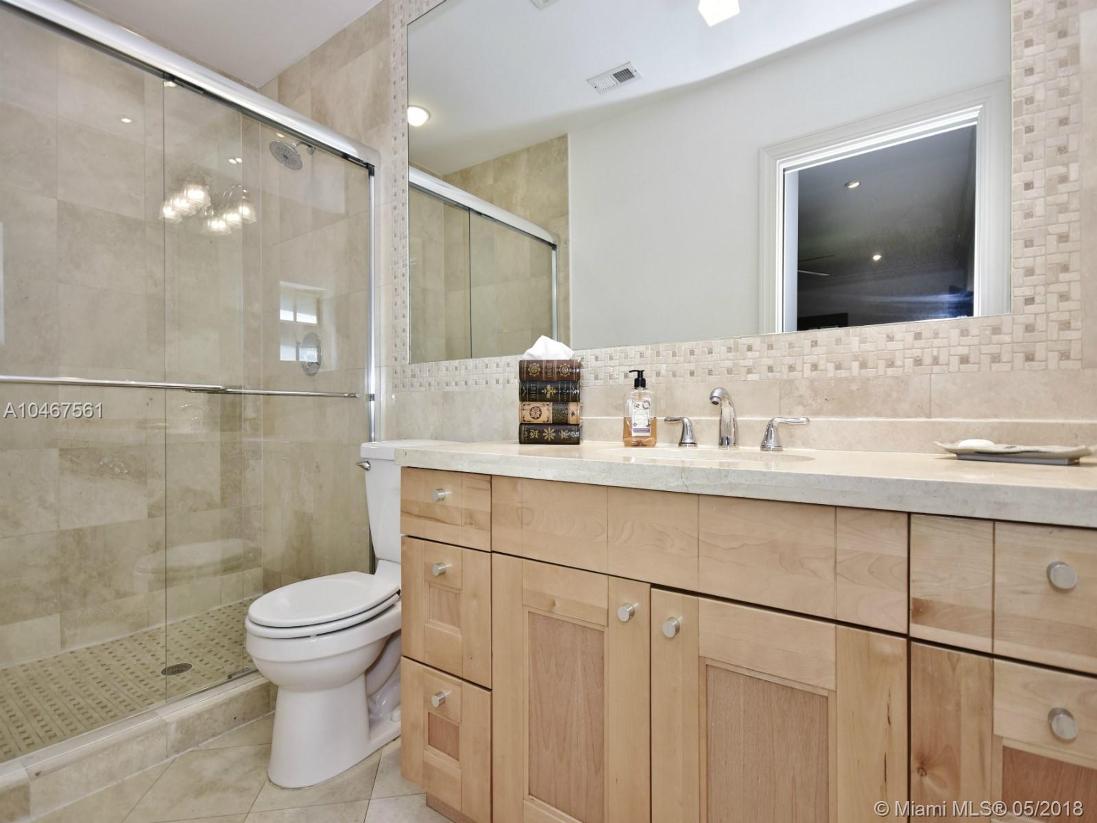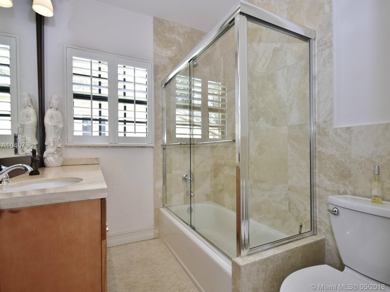 Dripping in charm, this exquisite remodeled 3 bedroom, 2 bathroom masterpiece is located on one of Miami Shores most beautiful streets. Over 1700 sf and totally remodeled sparing no expense, this gorgeous home features: new solid wood kitchen cabinets with island, granite counter tops and GE profile SS appliances, two remodeled bathrooms, rich thick oak wood floors, impact windows and doors, custom recessed lighting, tray ceilings, Bahama shutters, built-out closets and more. Designer slate concrete tile roof only 6 years old. Large tropical back yard with built-in grill and so much more. Bring your fussiest client. Easy to show.