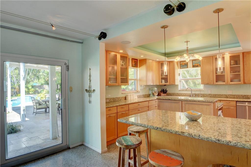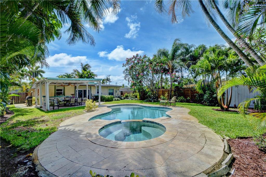 Seller Relocating, This is the one!!!! Poinsettia Heights beauty is offering an open floor plan, spacious kitchen with cooking island, breakfast bar, 2 sinks, granite counter tops, stainless steel appliances, water filtration system, 3 bedrooms 2 bathrooms with a split floor plan plus laundry room. Awesome terrazzo floors flow throughout. A Large back yard boasting a newer heated pool with spa (gas heater), covered patio with an outside wet bar, Lush Landscaped, fenced yard. Impact windows.