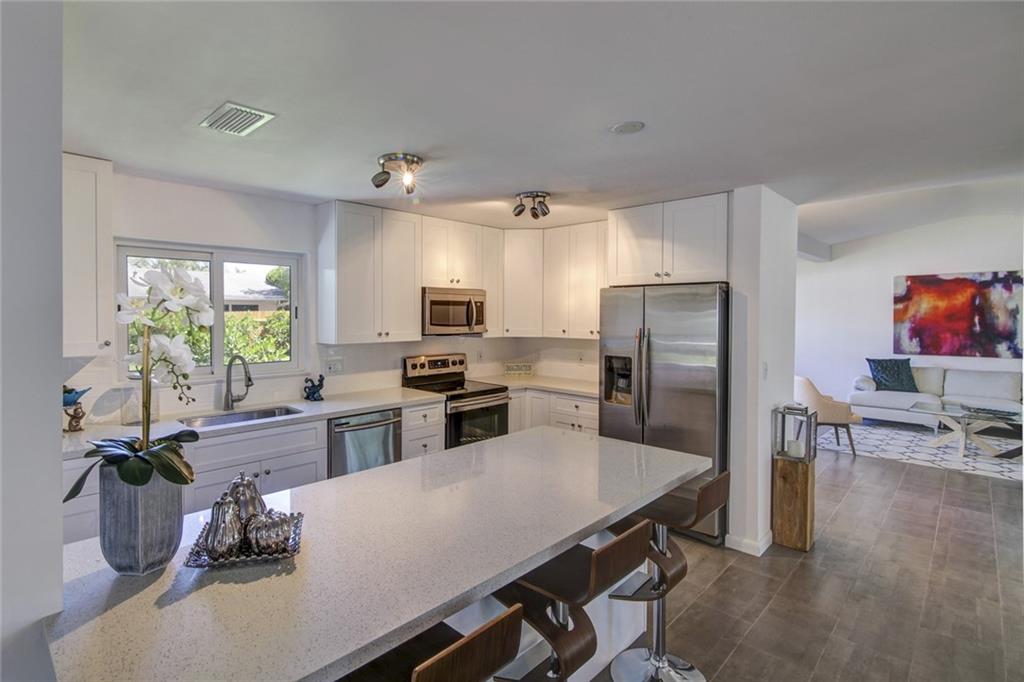 Back on Market! 2 MIN'S TO BEACHES! Renovated 4/4 w/pool on over a third of an acre! Private IN-LAW QTRS! New: Roof, PGT Impact Windows/Doors, Kitchen, Porcelain Tile, NO CARPET! Resurfaced Pool, Covered Outdoor L/A, Tank-less wtr htr. Located in the HEART of SE FL's newly planned urban Oceanside city. Mid-Century design, space for boat, wide sidewalks, walk to dining/retail. BIKE TO BEACH! Smart buy, CAN BE INCOME PRODUCING. NEW ZONING/T-houses Affordable taxes/No HOA fees/Turn-Key/Great Investment-