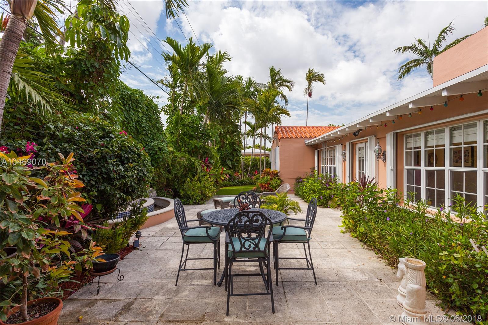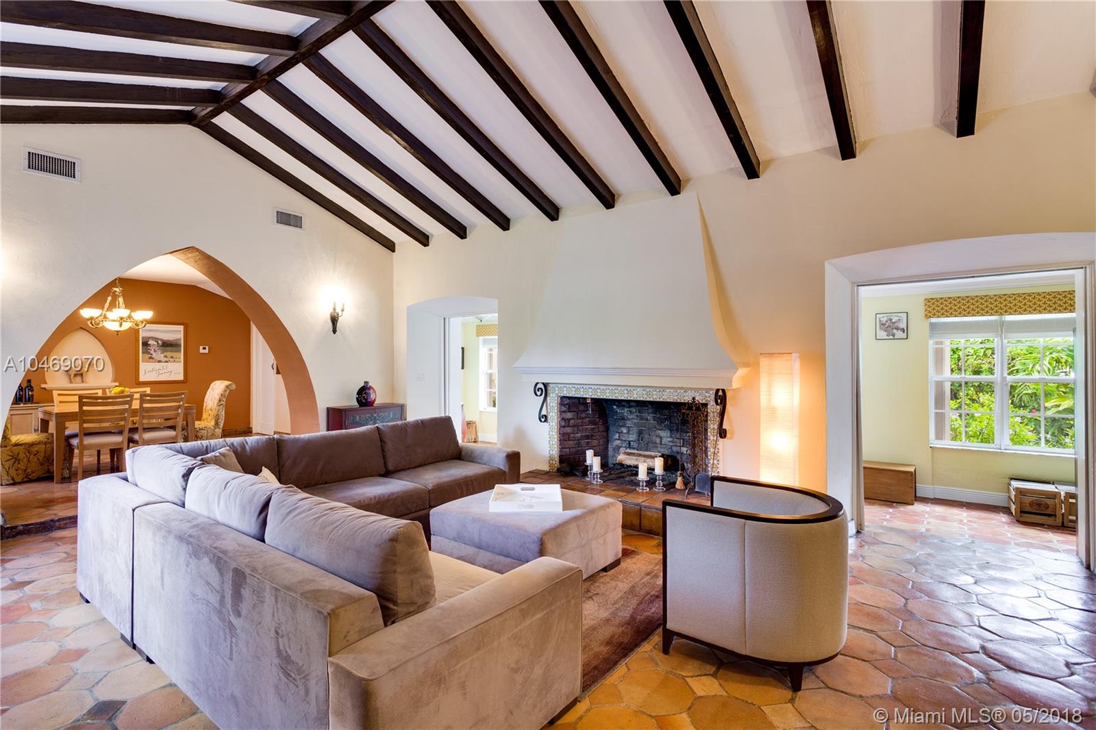 Commanding architectural features are evident in this stylish 1938 Art Deco Mediterranean home. Upon entry, a bold fireplace commands attention as do the beamed ceiling and the whimsical archways. Spacious bedrooms, updated kitchen and bathrooms, and plentiful storage abound. Walled and gated, the home has a new roof and has been freshly painted which all add up to turn-key living. The alluring garden, part of the 10,000-foot lot proudly displays a large fountain that graces the charming patio. Designed by renowned architects, Kiehnel & Elliott, (the Architects for El Jardin in Coconut Grove and Coral Gables Congregational Church), for lovers of historical architecture, this home will not disappoint. A Very Special Home.