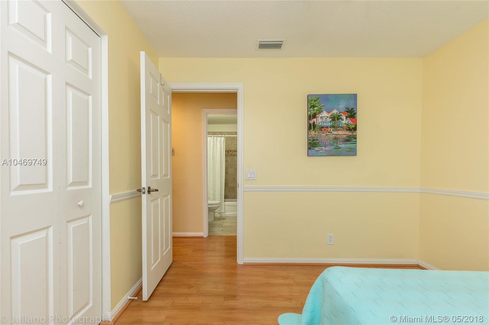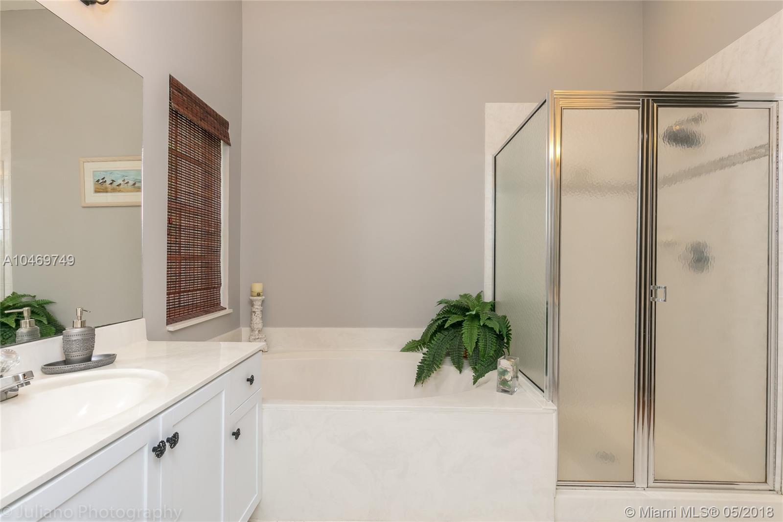 Move in ready! This perfect,well appointed,1 story family home features 4 bedrooms,2 ½ baths, 2 car garage and sits on an over 9000 s.f. corner lot.The backyard is fenced and has room for a pool.Covered front and rear patios have plenty of space to enjoy the outdoors.Accordion hurricane shutters make storm prep easy.The interior features laminate wood floors thru out,crown moldings in living areas,updated baths and energy saving Solar Water Heater system.The kitchen has granite counters,SS appliances,a full size bar and room for a family table.The spacious,open floor plan makes this home great for entertaining.The oversized Master has large walk in closet and beautiful bath featuring separate shower/tub & dual vanities.All A+ schools, guard gated,just steps to the pool and rec areas.