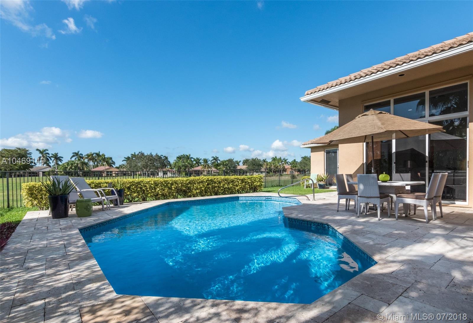 Amazing Golf Course view custom beauty with renovated marble pool deck tucked on a private fully fenced travertine pool area with one of the most spectacular Golf views! Situated majestically on the 8th hole of The Players Course, at Weston Hills Country Club. This elegant model condition property shows light and bright. Diagonal tile welcomes you with windows everywhere looking out to the beautiful pool are and Golf Course. Soaring ceilings with a split floor plan. All baths have been renovated in today’s style and taste. Gourmet kitchen to satisfy and Chef with 42 inch wood cabinetry granite countertops stainless steel appliances and center island. Tray ceilings, 3 car garage, recently painted exterior, hurricane shutters, New A/C 2016, and so much more!