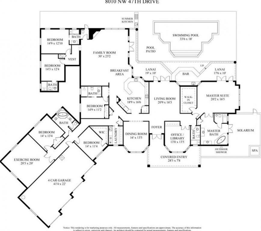 Impeccably maintained and updated, this 6 bed, 6 bath LAKE FRONT estate sits on a quiet cul de sac in charming Whispering Woods, 1++ acre of land. Beautiful breeze off the lake, expansive water views. Neighborhood has approx 200 custom homes; NO TRACK HOMES! Home ALSO has an office, + a 20 x 20 kids playroom/gym, + 4 car garage. 24x24 saturnia marble floors throughout; wood floors in bedrooms, marble pavered patio, summer kitchen, private solarium + jacuzzi + outside shower off master suite