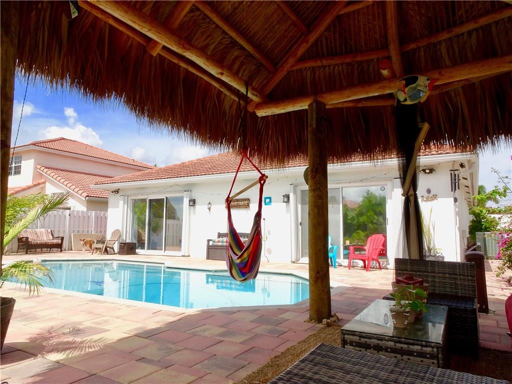 SPECTACULAR 4 BEDROOM, 2 FULL BATH DIRECT LAKEFRONT BRAND NEW CHICKEE HUT. HOME IS IN EXCELLENT CONDITION. FEATURING TWO LIVING AREAS, EXPANSIVE MASTER BEDROOM WITH ROMAN TUB AND SEP. SHOWER, SS APPLIANCES. NATURAL GAS. ROOF 2011. RENOVATED & ILLUMINATED POOL 2012. POOL HAS A LIGHT SYSTEM WITH A REMOTE CONTROL. CAMARA SYSTEM. NEW WATER HEATER. ACCORDION SHUTTERS. FRESHLY PAINTED. CLOSE TO SAWGRASS,I-595, I-75, SHOPPING & more, TRIPLE SPLIT FLOOR PLAN. LOW MAINTENANCE, GREAT COMMUNITY.