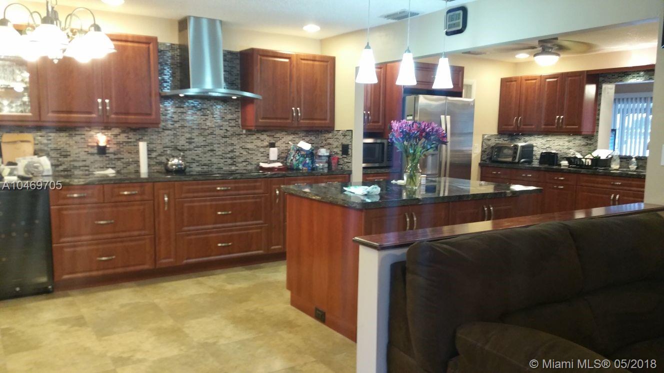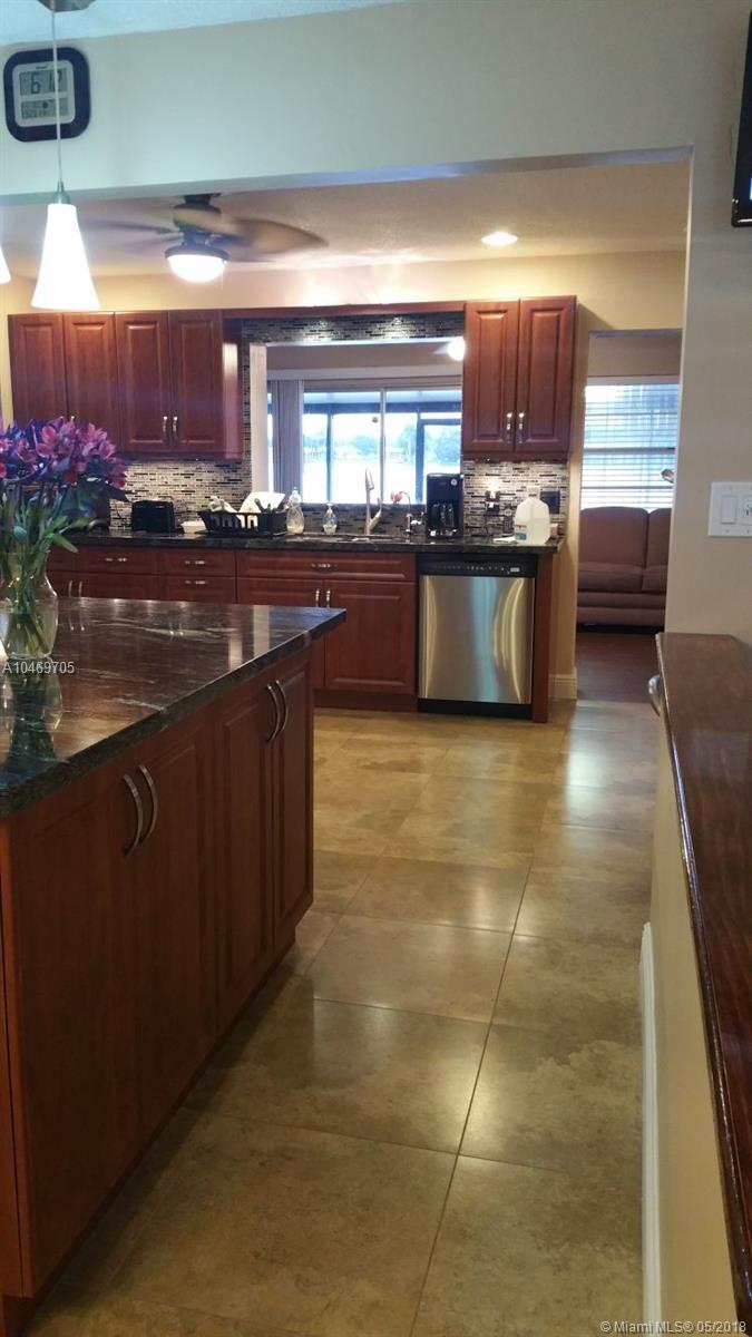 3/2 Waterfront Home on Cul-De-Sac, incredible lake views, BEAUTIFUL KITCHEN with granite counters and island with stainless steel appliances, upgraded bathrooms, 2 car garage, ceramic tile flooring, impact windows and doors, large screened in patio, driveway for Boat or RV, fenced backyard, 120 ft. sea wall and mango tree in backyard. In addition, two walk in closets in master bedroom, alarm, one bedroom has laminate wood flooring, double oven self cleaning, very nice built in cabinetry for more storage and wine cooler included as well! Renovations were performed by previous owner. Show and Sell, call listing agent for appointment.