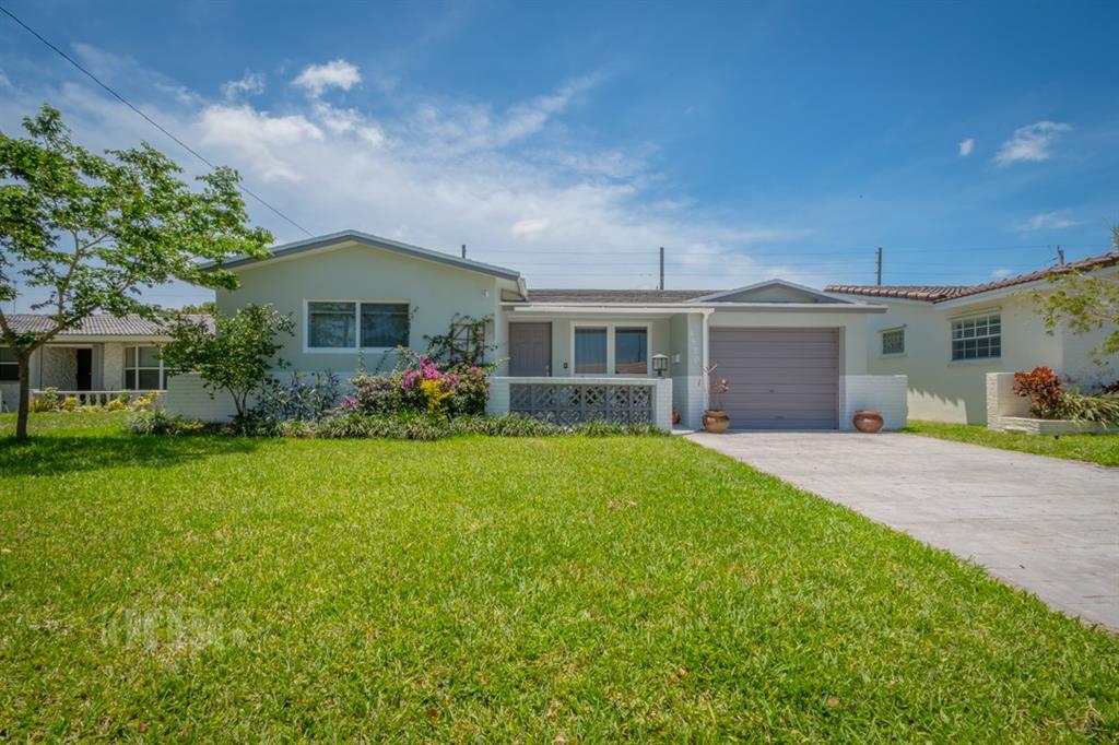 This 3/2 home has been BEAUTIFULLY remodeled with the best of everything! The Living/Dining/Kitchen "Great Room" is impeccable with glossy tile flooring & looks directly at the large pool & fenced yard. The open Kitchen has pale grey Shaker style cabinets, white quartz "waterfall" countertops & all stainless steel appliances. A marble tile backsplash, stainless range hood & island breakfast bar complete this Dream Kitchen. Impact doors/windows, garage, laundry & location make this your 'must have' home.