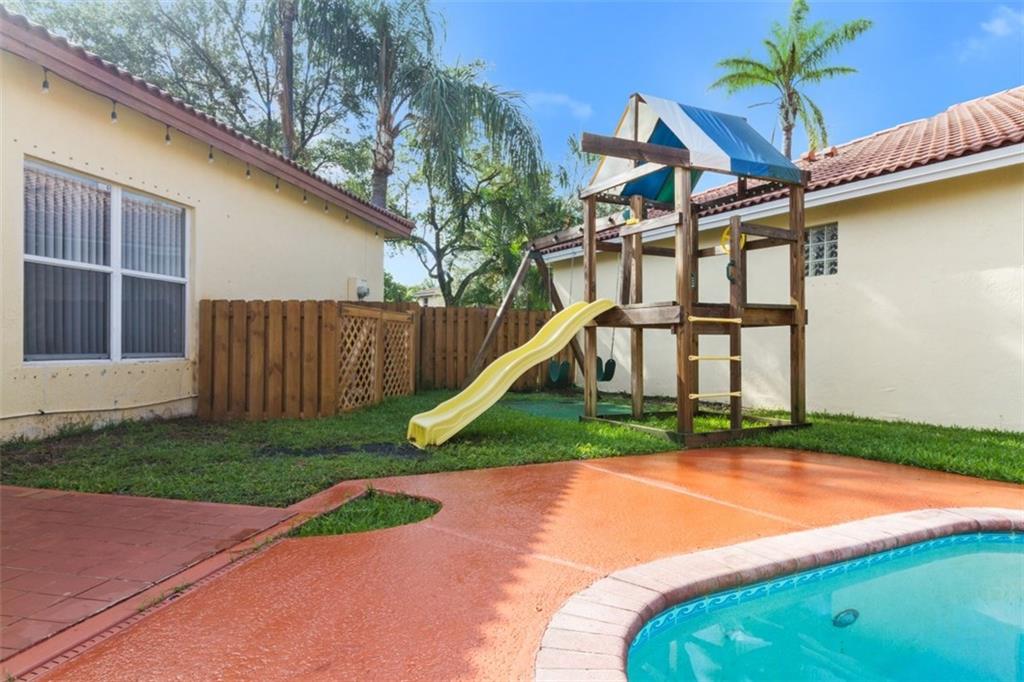 Updated and beautiful 3 bedroom, 2 bath home in gated community on a cul-de-sac with extra-large, fenced backyard. One of few homes in neighborhood with its own swimming pool! Association also has community pool. Features tile & laminate floors, crown molding, updated kitchen and bathroom, granite counters, stainless steel appliances, Nest thermostat, 1-car garage. A/C 2 years old w/10-year warranty. Newer appliances. Washer/dryer 2016. Microwave brand new. Pool has safety net. Desirable neighborhood.