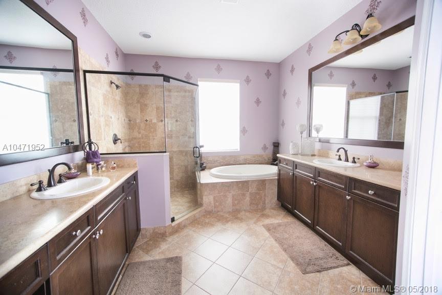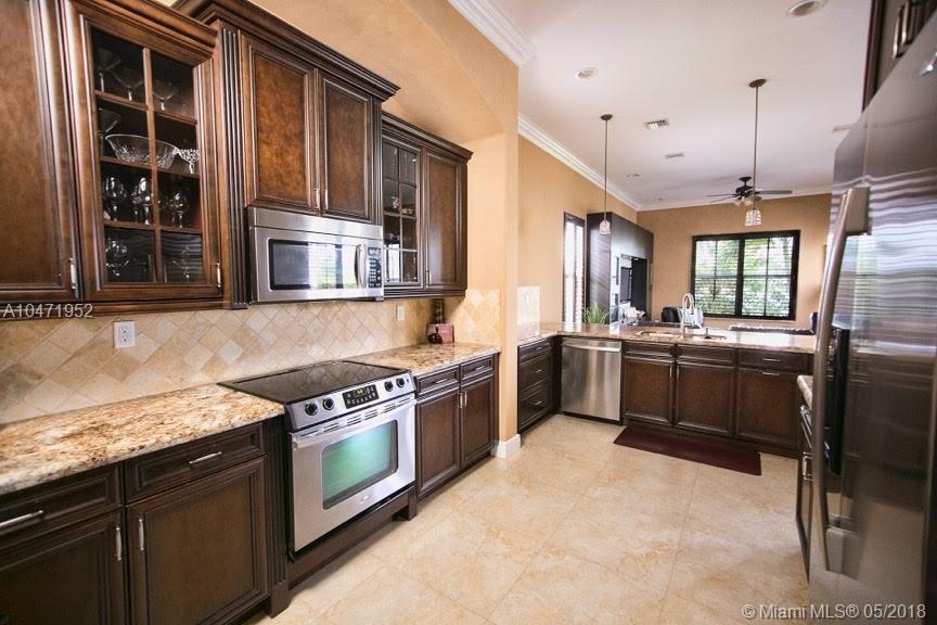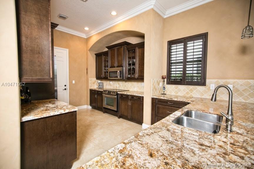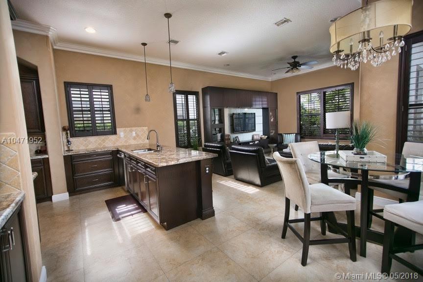Spectacular two story water-front home in prestigious Monterrra. This bright, open floor plan boasts 4 large bedrooms and 3 spacious baths. Designer upgrades throughout including: stainless appliances, granite counter tops, crown molding, wood kitchen cabinets, 24x24 rectified porcelain tile, impact glass windows and doors, built-in entertainment unit and custom closets in all rooms. Perfect home for entertaining either in the luxurious gourmet kitchen/family room or the tranquil backyard with lake view.