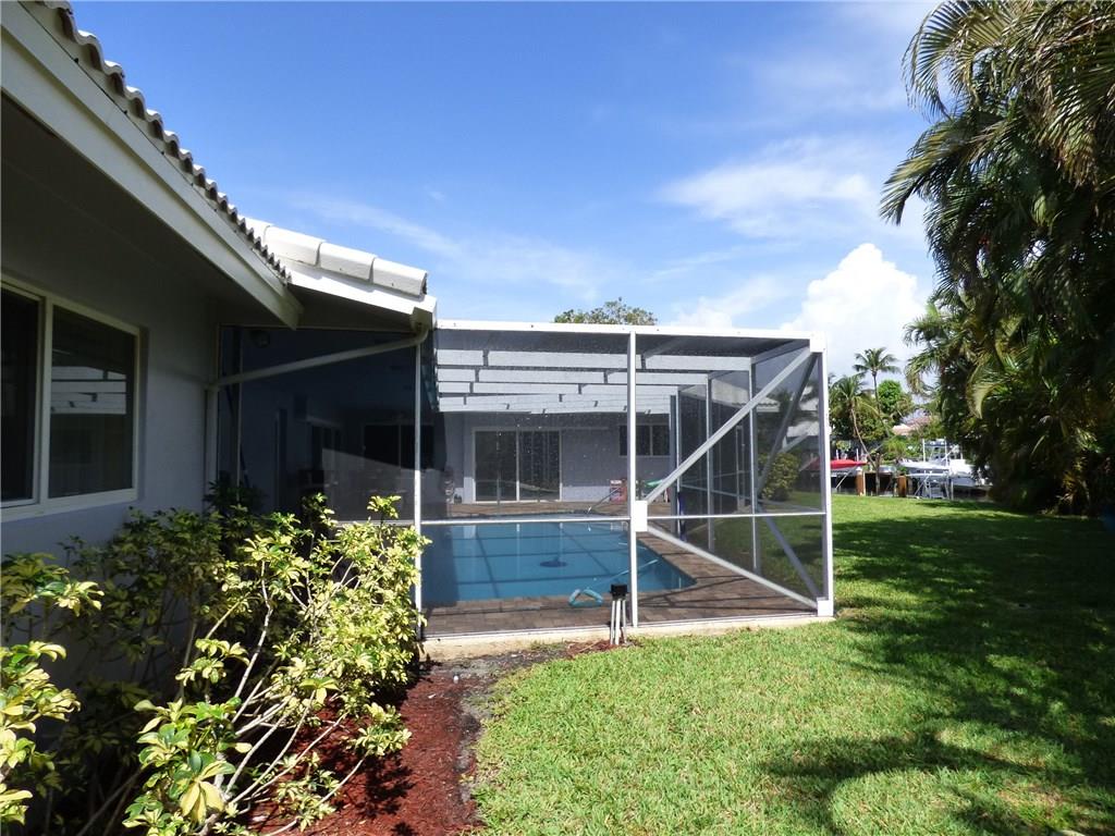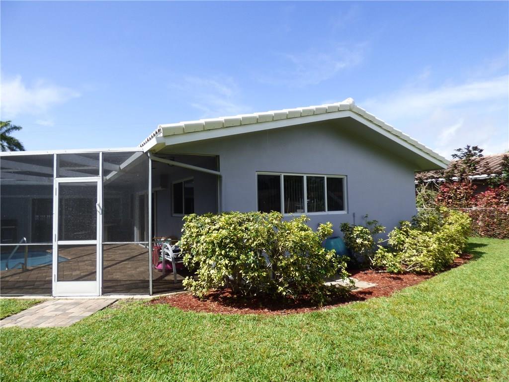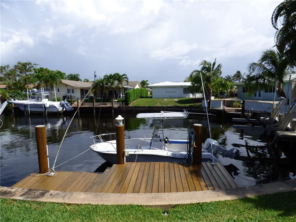This sprawling corner home is located in a wonderful neighborhood just west of US 1 in SE Pompano Beach. Situated on an enormous 1/4 acre+ waterfront lot (1 FB, 40' on H2o), the possibilities are endless. This home offers a sought after split bedroom plan, & extremely spacious common living areas including a media room by 2 of the bedrooms, a spacious living room with a beautiful view of the pool, & a wonderfully updated open kitchen and dining area also overlooking the pool. Newer roof & mostly impact.