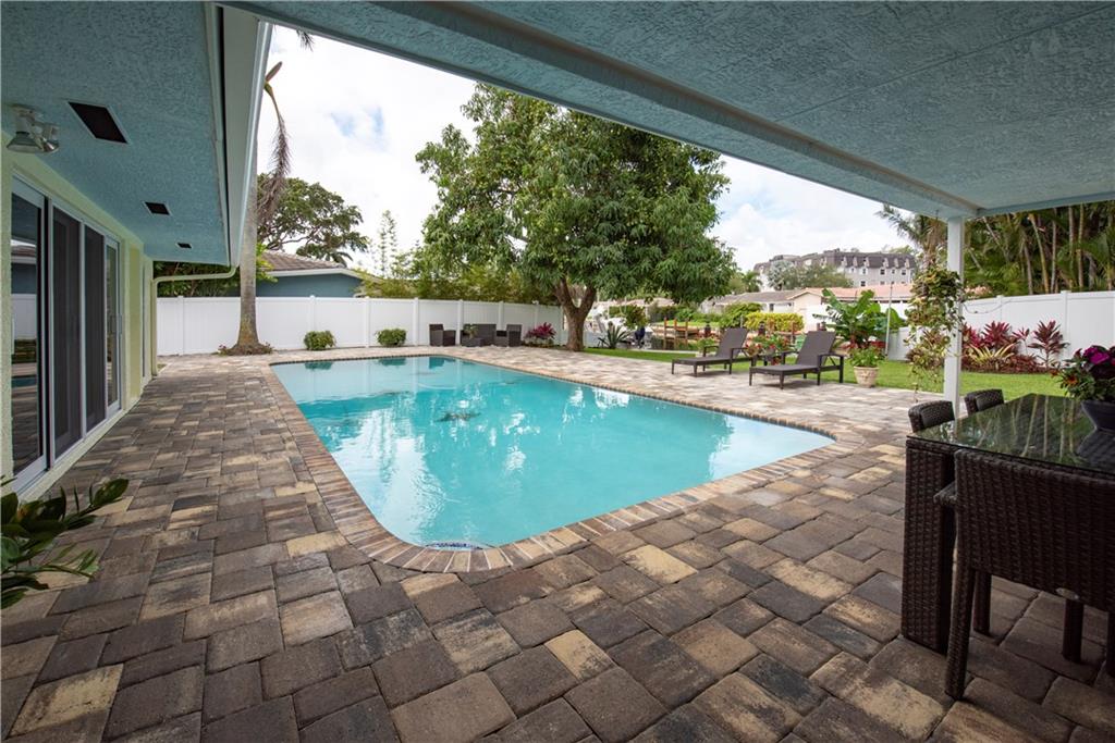 Stunning, completely updated in sought after Coral Ridge Isles! New open concept chef's kitchen w/gas range cooking island, top stainless appliances & breakfast bar for 8. New porcelain plank floors continuous throughout. Sliders & French doors seamlessly blend interior w/outdoor living. New triple pane impact doors & windows. New plantation shutters, custom shades, crown moulding, & recessed lights. New pool, pavers & PVC fenced yard. New A/C. 2 car garage & indoor laundry. You won't find a better home!