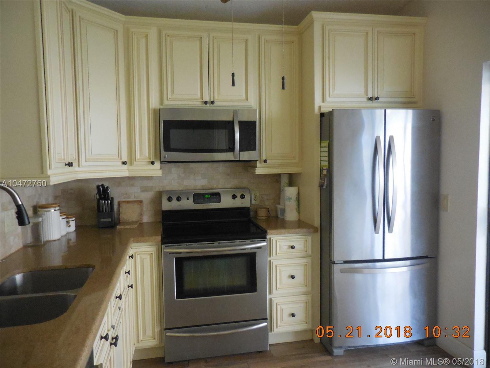 Remodeled home. Impact resistance front door. Kitchen wood cabinets with S/S appliances, large kitchen pantry with custom built drawers. Master Bath with dual sinks and custom built in storage. Patio terrace and awning. Fenced yard. Accordion/and regular hurricane shutters. New interior A/C. 3/2 with garage plus den/office. This is a must see.