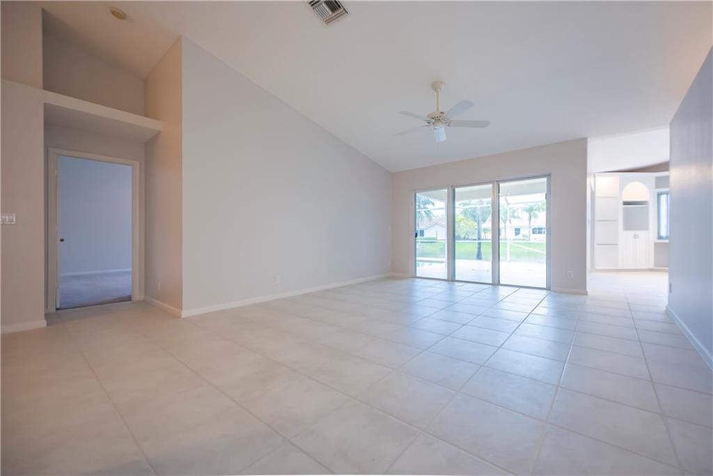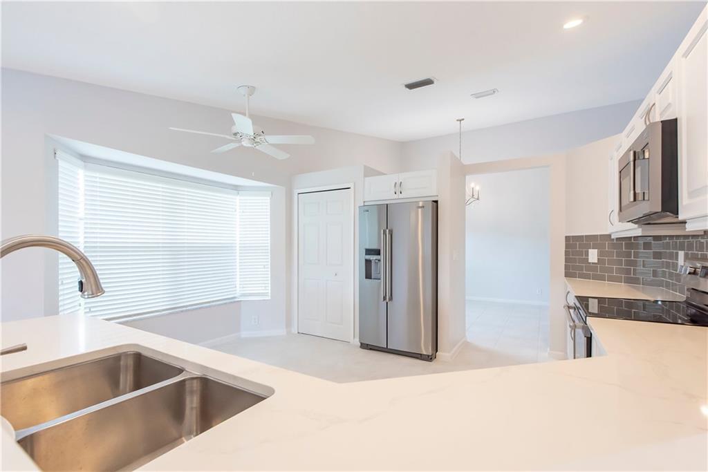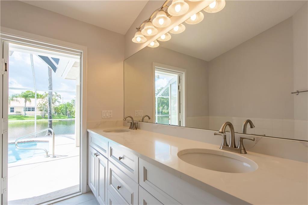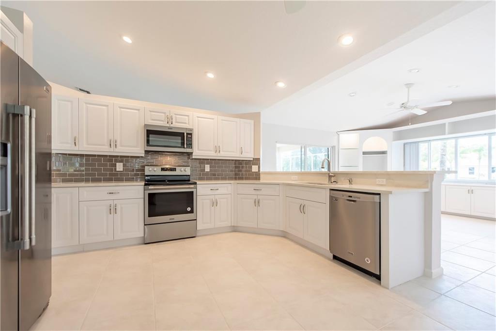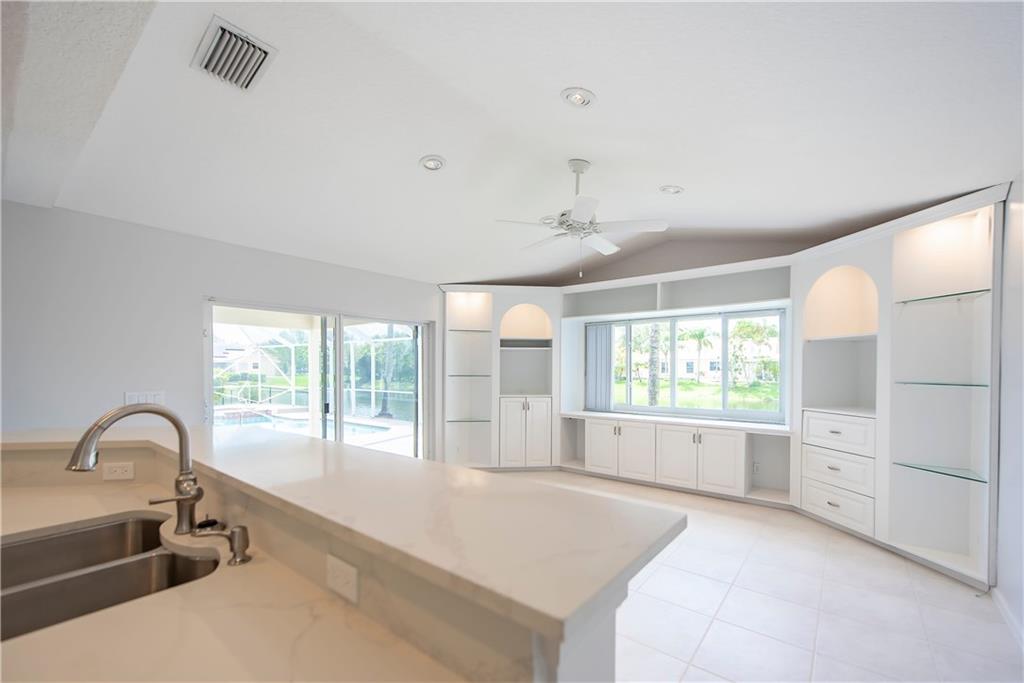 Completely renovated, updated & upgraded contemporary. Waterfront lot. New Kitchen, baths, carpet & fixtures. New roof in 2017. Quiet interior lot. Walk to parks, playground, shopping & house of worship. White cabinets, quartz countertops, subway tile backsplash, stainless steel undermount sink & appliances. Brushed nickel fixtures & hardware. Split bedroom plan, separate family room, vaulted ceilings with knockdown texture. Architecturally interesting. Large scr. patio, pool/spa overlooks wide canal.