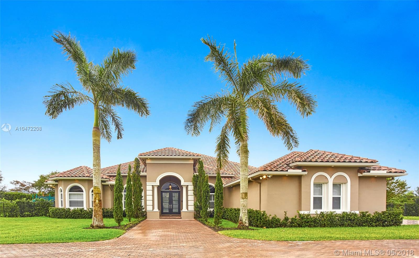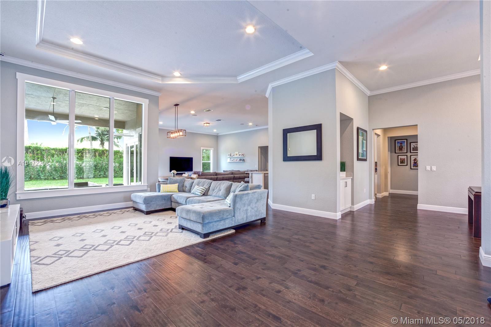 BUILDERS ACRE IN DAVIE! THE TURN KEY NEWER CONSTRUCTION ESTATE HOME IS SITUATED IN THE AFFLUENT GATED COMMUNITY OF WOODBRIDGE RANCHES. THE ULTRA MODERN CUSTOM BUILT ONE-STORY HOME OFFERS A HIGHLY DESIRABLE SPLIT OPEN FLOOR PLAN WITH 5 BEDROOMS & 4 FULL BATHS INCLUDING CABANA BATH. THE MANY FEATURES INCLUDE SALT WATER POOL, HURRICANE IMPACT WINDOWS & DOORS, 16 SECURITY CAMERAS, CUSTOM WOOD FLOORS THROUGHOUT, EXTERIOR CUSTOM LIGHTING AROUND PERIMETER OF HOUSE, SURROUND SOUND & 3 CAR GARAGE.