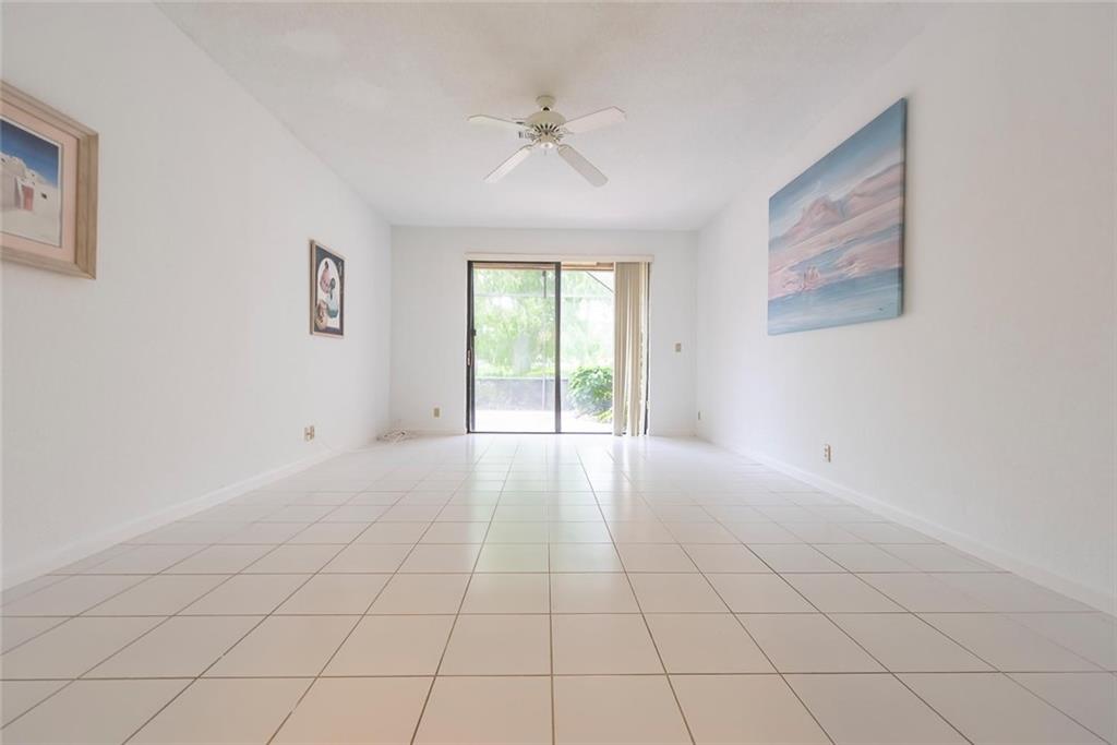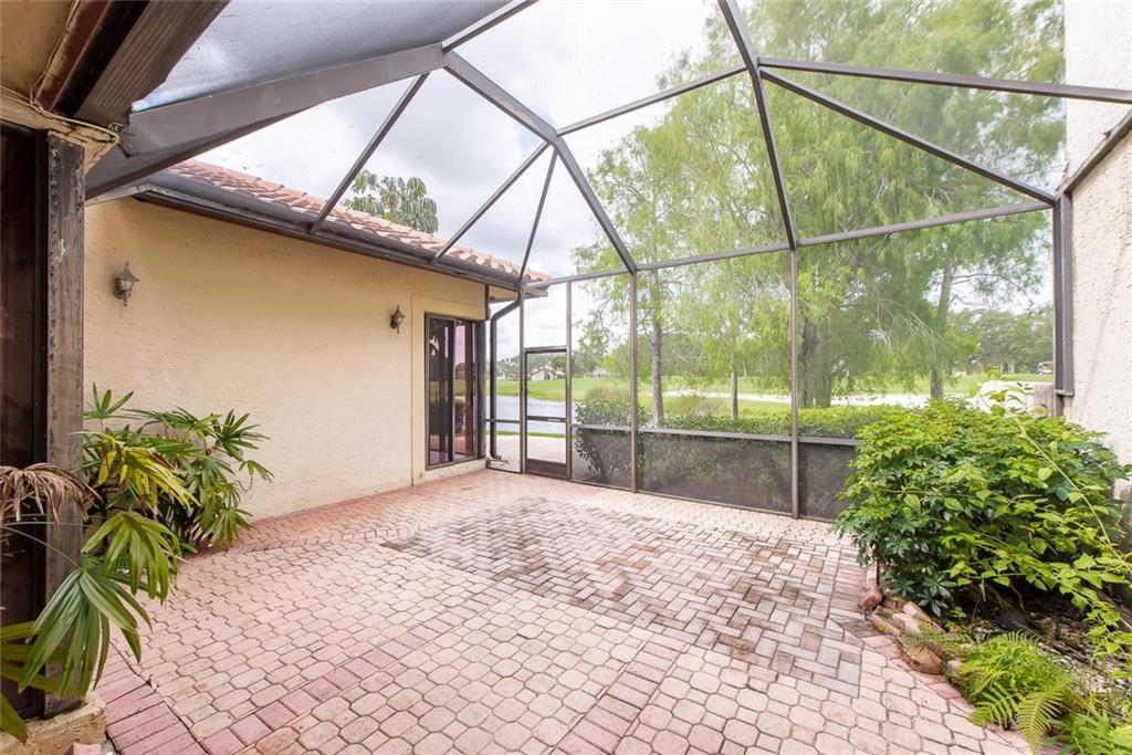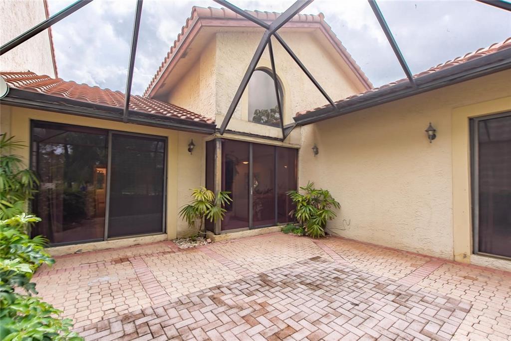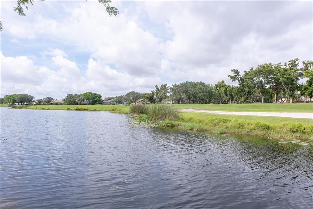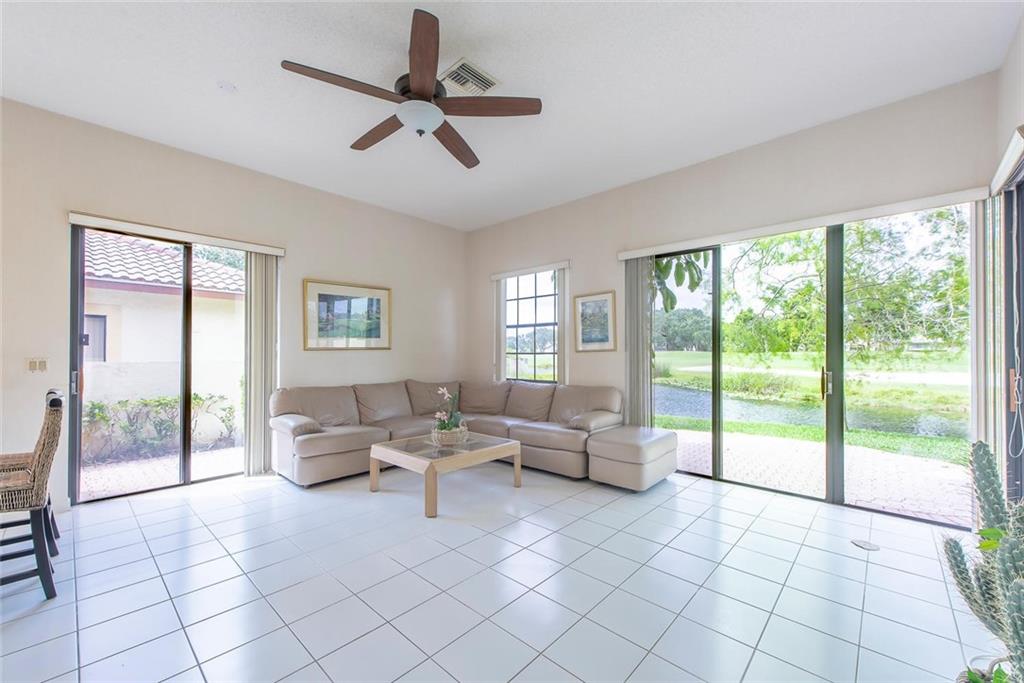 Million dollar view! Fabulous vistas of flowing water way & rolling greens of golf course from private patios, kitchen, family, living rooms & master bedrm. FULL 2 CAR GARAGE & PAVER DRIVE. Architecturally timeless high ceilings, palladium window & multiple sliding doors revealing tropical gardens. Split bedroom floor plan. Deeded condo, functions like an HOA. Eagle Trace maintenance & lawn included in fee. Priced commensurate with value to update & upgrade as you like. NO OBLIGATION TO JOIN GOLF CLUB.
