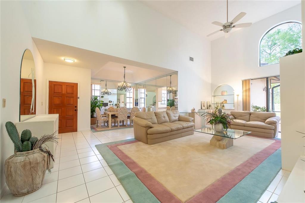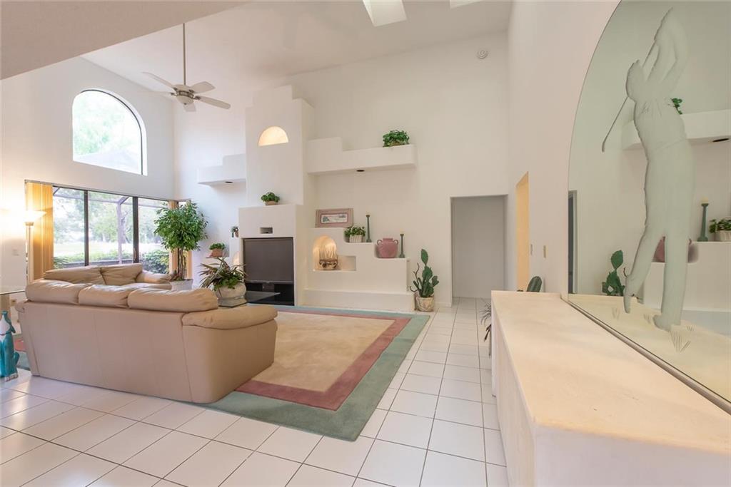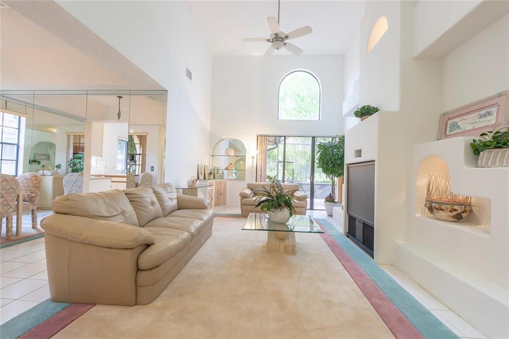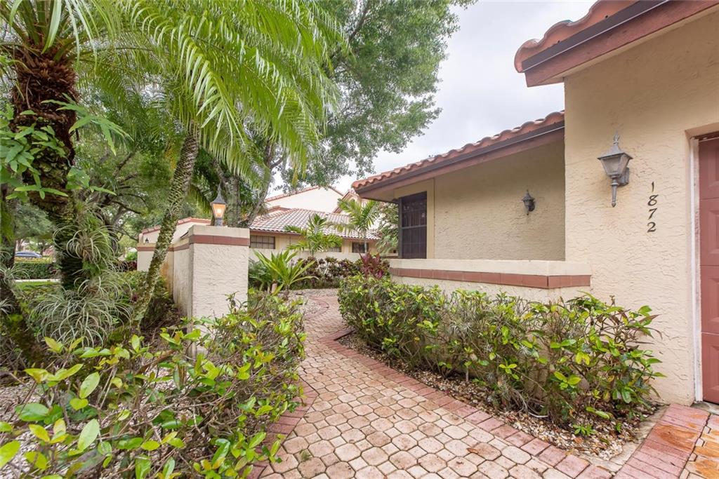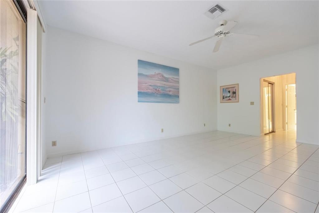 Million dollar view! Fabulous vistas of flowing water way & rolling greens of golf course from private patios, kitchen, family, living rooms & master bedrm. FULL 2 CAR GARAGE & PAVER DRIVE. Architecturally timeless high ceilings, palladium window & multiple sliding doors revealing tropical gardens. Split bedroom floor plan. Deeded condo, functions like an HOA. Eagle Trace maintenance & lawn included in fee. Priced commensurate with value to update & upgrade as you like. NO OBLIGATION TO JOIN GOLF CLUB.