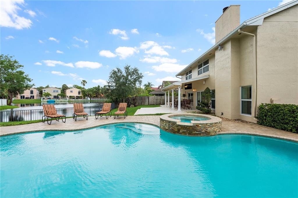 This sophisticated Plantation residence offers over 3,900 square feet of extraordinary living space. Featuring 4 bedrooms, 3.5 baths and a separate office attached to the master bedroom. You will treasure this private corner waterfront lot with nearly 1/2 acre of property and 40 foot pool surrounded with beautifully landscaped grounds and a fenced perimeter. The entire home has been updated offering hurricane impact windows and doors, recessed lighting, newer AC, floors, pool, surround sound and more.