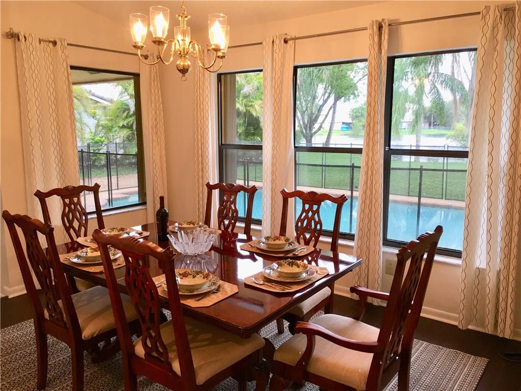 Pleasing 3BR/2BA Falcons Lea Home in Ivanhoe, Davie. Won't Last Long! Picturesque drive to home along beautiful tree-lined road. Spacious driveway, pristine barrel tile roof & brick accented exterior walls fronts tropical landscaped home. Entry opens to large livingrm w/serene nature view of lake, pool & tropical backyd. Voluminous ceilings. Spectacular lake views from diningrm, familyrm & kitchen areas. New espresso laminate flooring in livingrm & diningrm. Freshly painted interior in crisp white. Beautiful oversized pie-shaped lot. Accordion shutters. Absolutely charming!