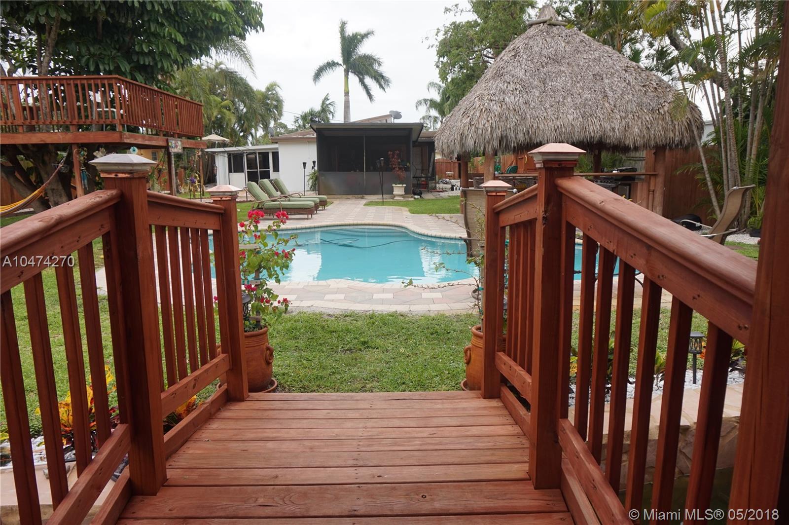 Fully remodeled 3 bedroom, 2 bathroom, beautiful home near downtown Hollywood and I-95. This house features a fully remodeled kitchen with granite counter tops and stainless steel appliances. Both bathrooms have been tastefully done. Windows have been replaced to impact windows, while family room features accordion shutters. As you retreat into the back yard you will find a peaceful, family oriented back yard that features a brand new Tiki Hut with a built in Barbecue, a unique tree house, a very nice pool surrounded by pavers that leads into the Game area. This house is in move in conditions, do not pass this opportunity.