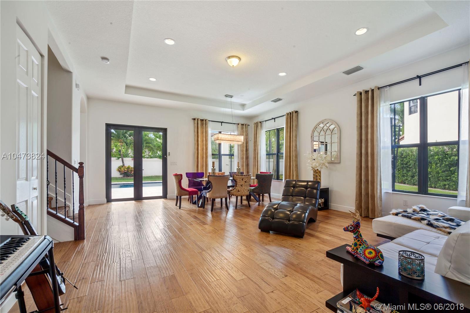 OVERSIZED LOT IN MONTERRA! THE MONTECITO MODEL OFFERS 4 BEDROOMS & 3 FULL BATHS HIGHLIGHTED BY AN OPEN FLOOR-PLAN CONCEPT. THE HIGHLY UPGRADED HOME FEATURES AN OVERSIZED LOT, SALTWATER POOL, HURRICANE IMPACT WINDOWS, STATE OF THE ART KITCHEN. THE TWO CAR GARAGE HAS BEEN CONVERTED INTO ONE LARGE OFFICE/ PLAYROOM. THE 24 HOUR MAN GATED COMMUNITY OFFERS A STATE OF THE ART FULLY STAFFED FITNESS CENTER, TENNIS COURTS, BASKETBALL COURTS, WALKING TRAILS AND MUCH MORE. CENTRALLY LOCATED TO ALL MAJOR HIGHWAYS AND WITHIN WALKING DISTANCE TO BROWARD’S A + RATED SCHOOLS. PROJECTOR IS EXCLUDED