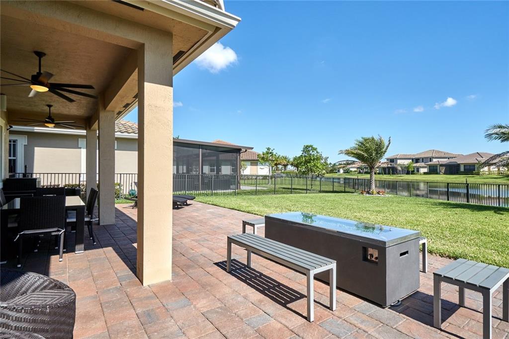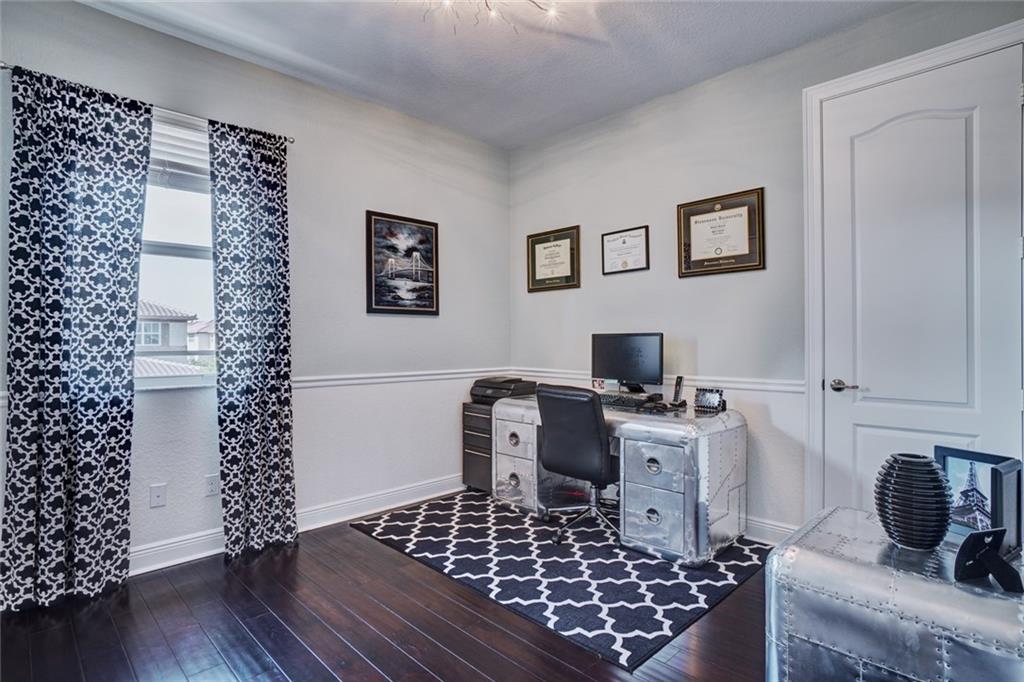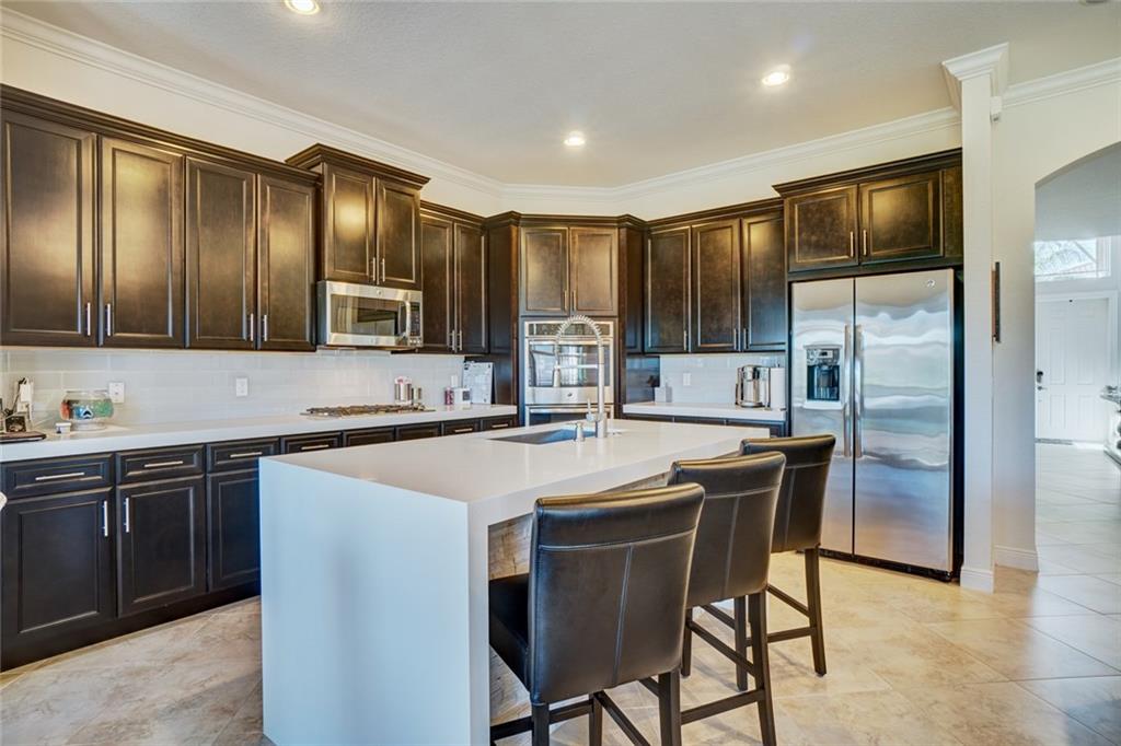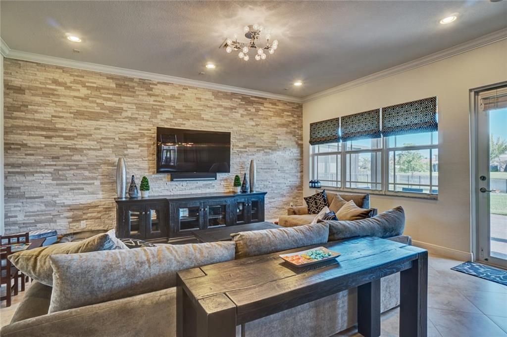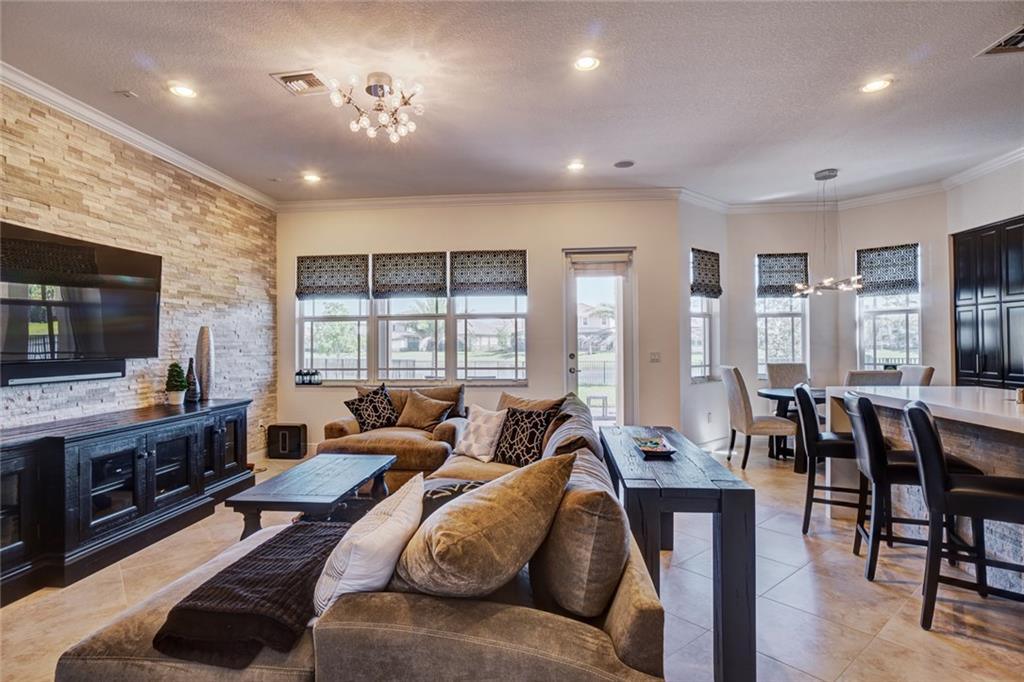 Simply Stunning upgraded home in MiraLago. Gorgeous 20" diagonal porcelain tile, designer colors, crown moldings, quartz kitchen countertop, custom kitchen fixtures & pantry doors, under-stairs closet, extended patio with extra gas hookups for fire pit & grill, gutters, beautiful landscaping, 2nd floor all hardwood, living room stone wall + wired for surround sound & outdoor speakers. This home shows better than a model. Amazing community with resort-style amenities. A+ schools.